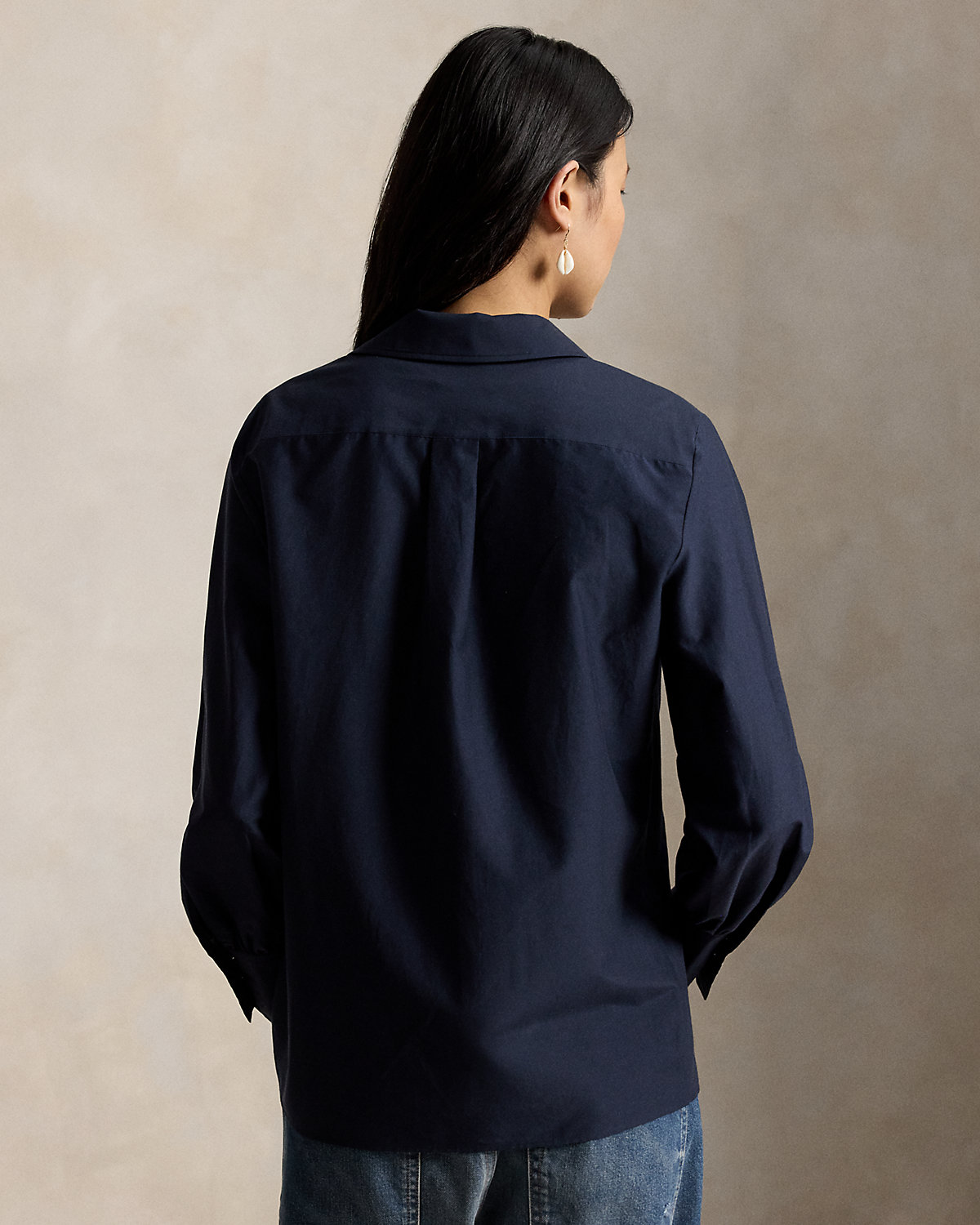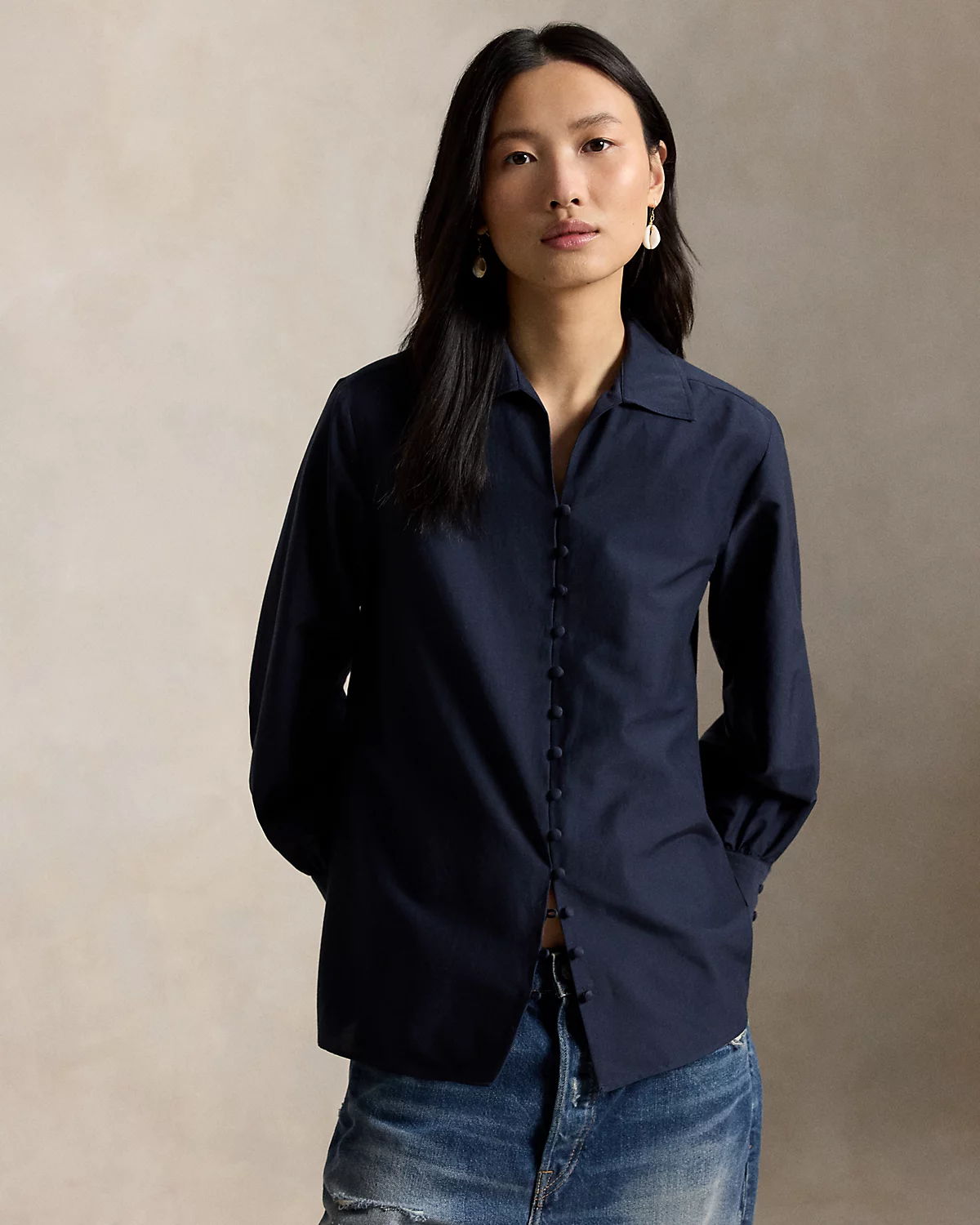 Blending cotton and silk yarns, this shirt features modern details including elongated barrel cuffs, a straight hem, and a refined div-and-loop placket with tonal dome divs.