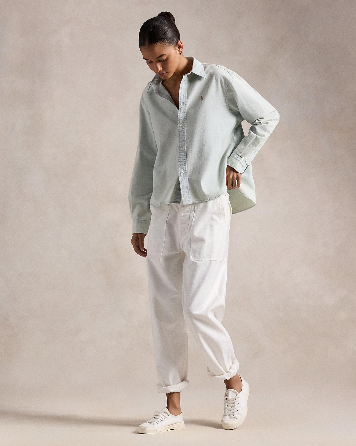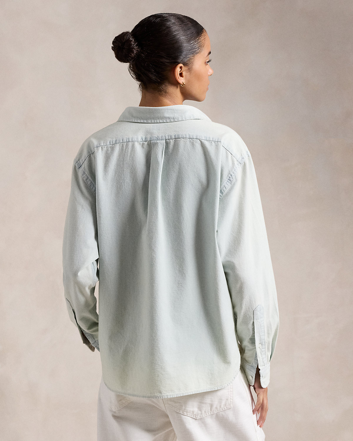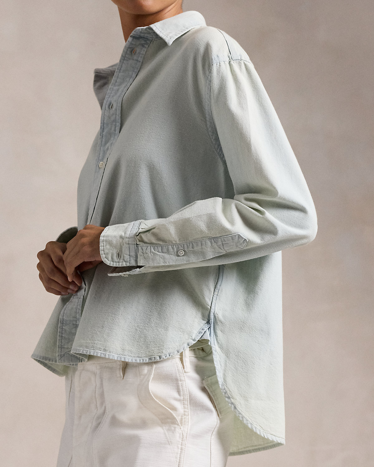 Crafted with Japanese chambray, this shirt is cut for a wide, cropped silhouette and lightly washed for softness. Our embroidered Pony adds a signature finish to the chest.