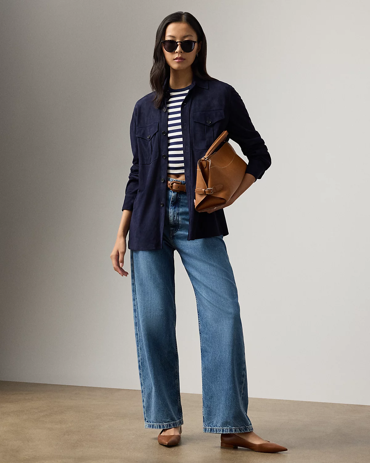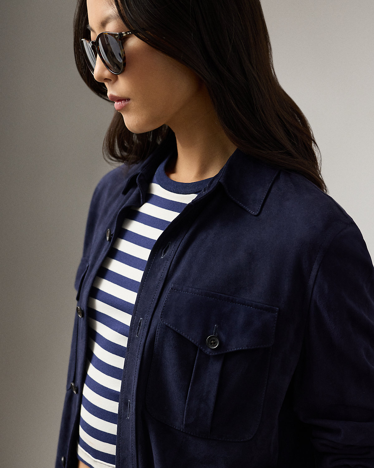 Cut for a slightly oversize, relaxed fit, this version of our Landry shirt is crafted with lightweight lamb suede and embellished with genuine horn divs at the chest pockets and placket.