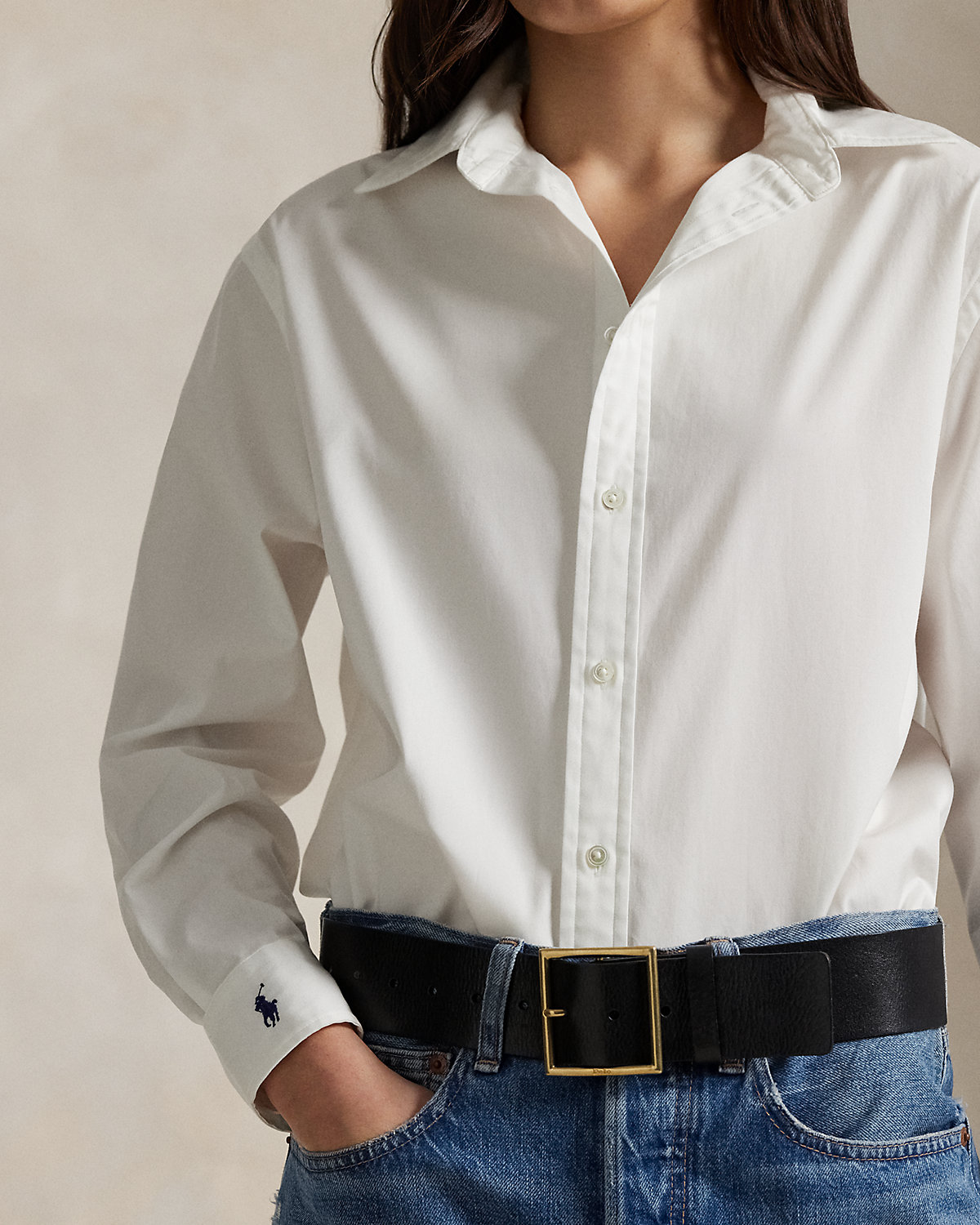 Woven with cotton for an oversize silhouette, this shirt is detailed with our signature embroidered Pony at the cuff.
