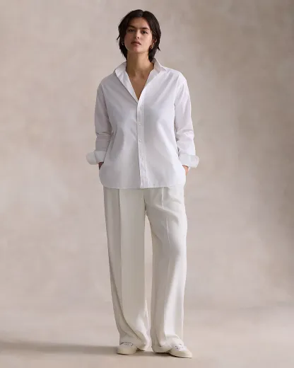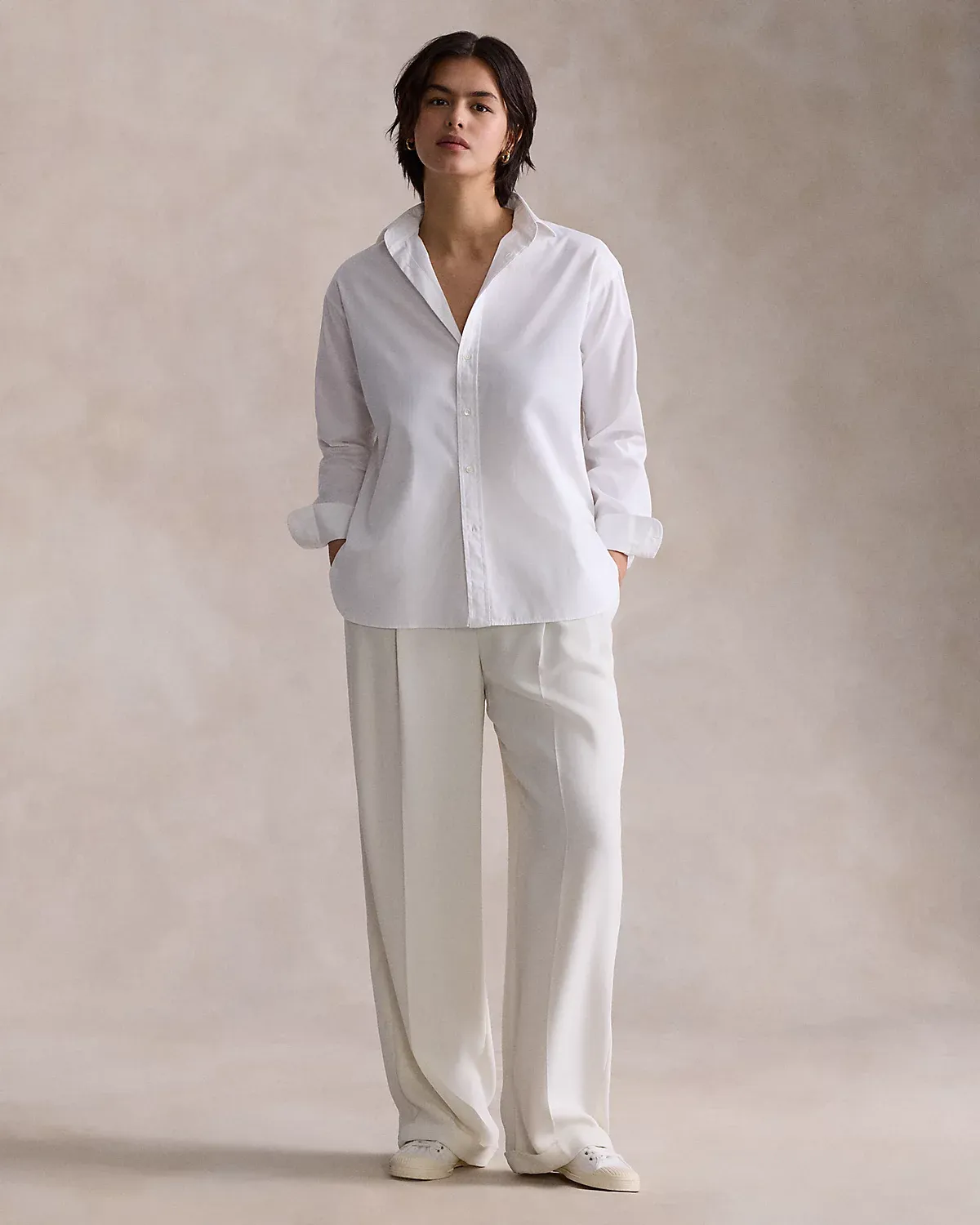 Rendered in cotton, this spread collar shirt is cut for a relaxed fit with an exaggerated high-low shirttail hem. Our signature embroidered Pony accents the right cuff.