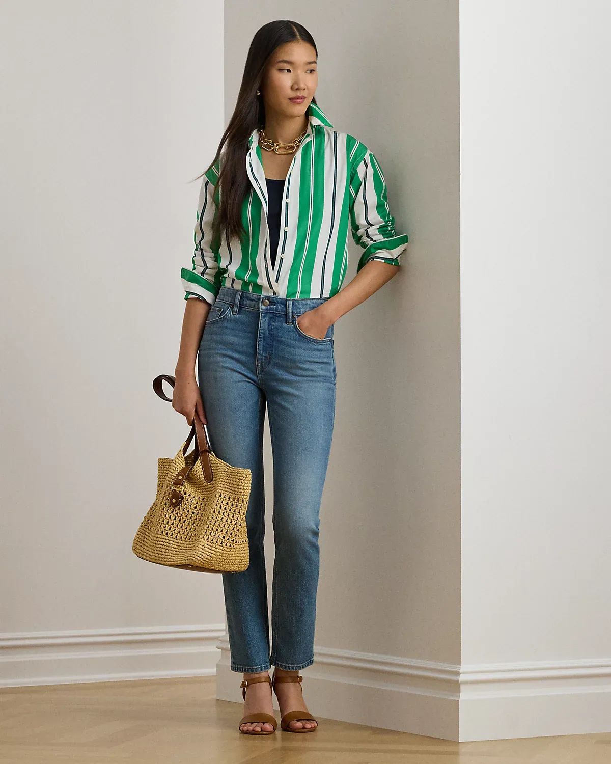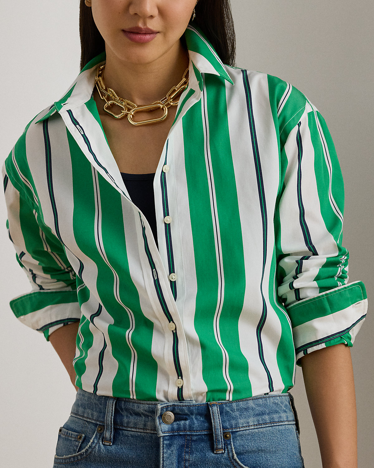 - Point collar. Buttoned placket. Buttons custom-developed with a “Lauren Ralpthth Lauren” logo.