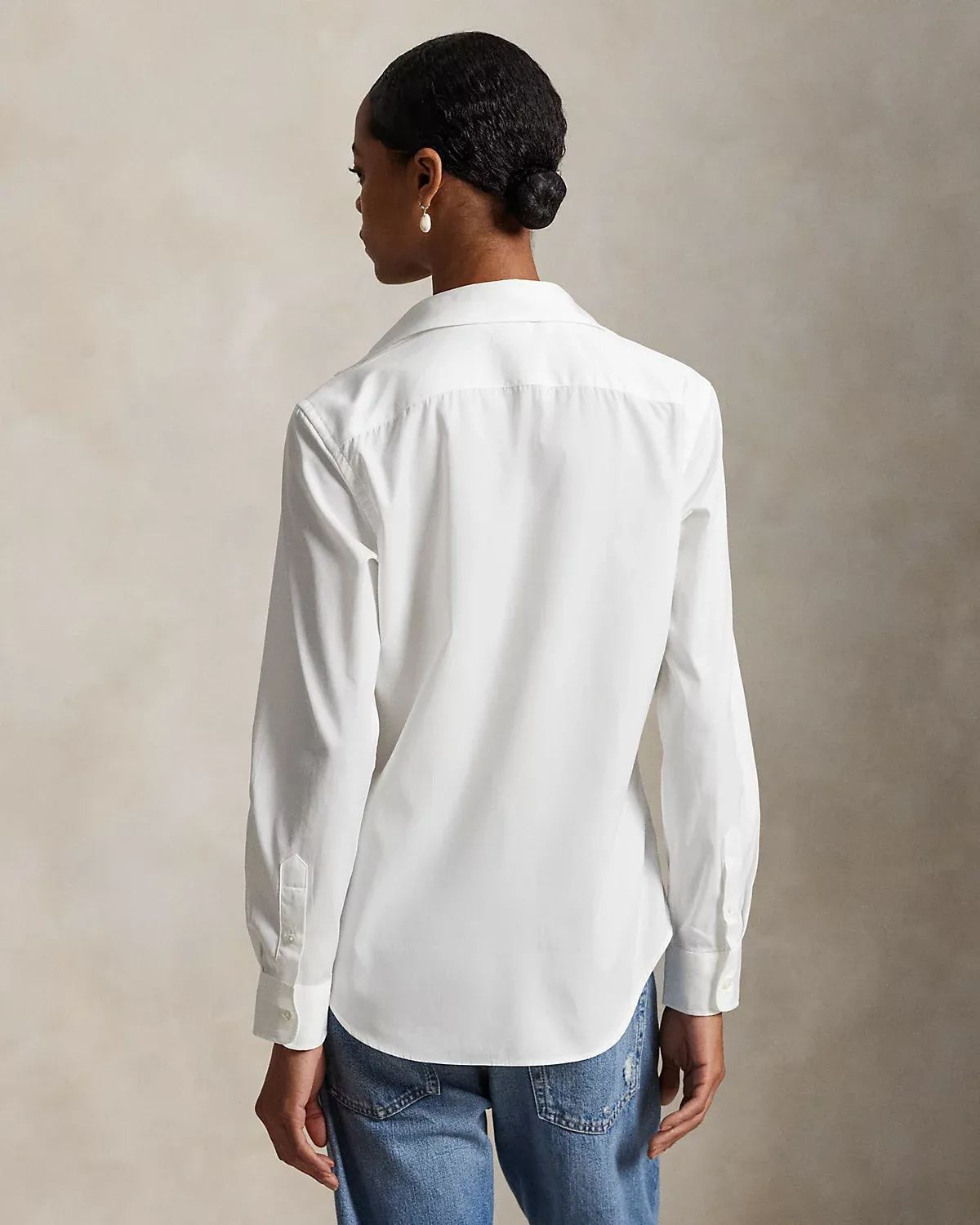 - Back yoke. Gusseted shirttail hem.