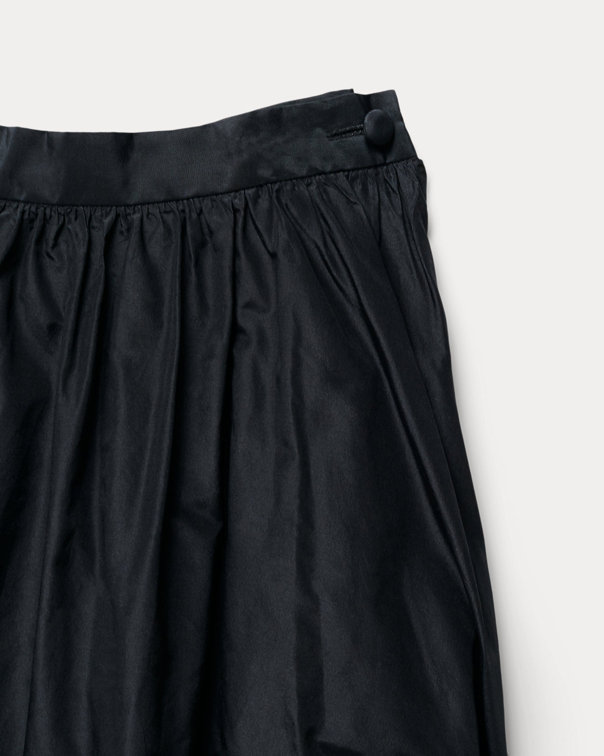 - Button and hook-and-eye closure at the waistband.