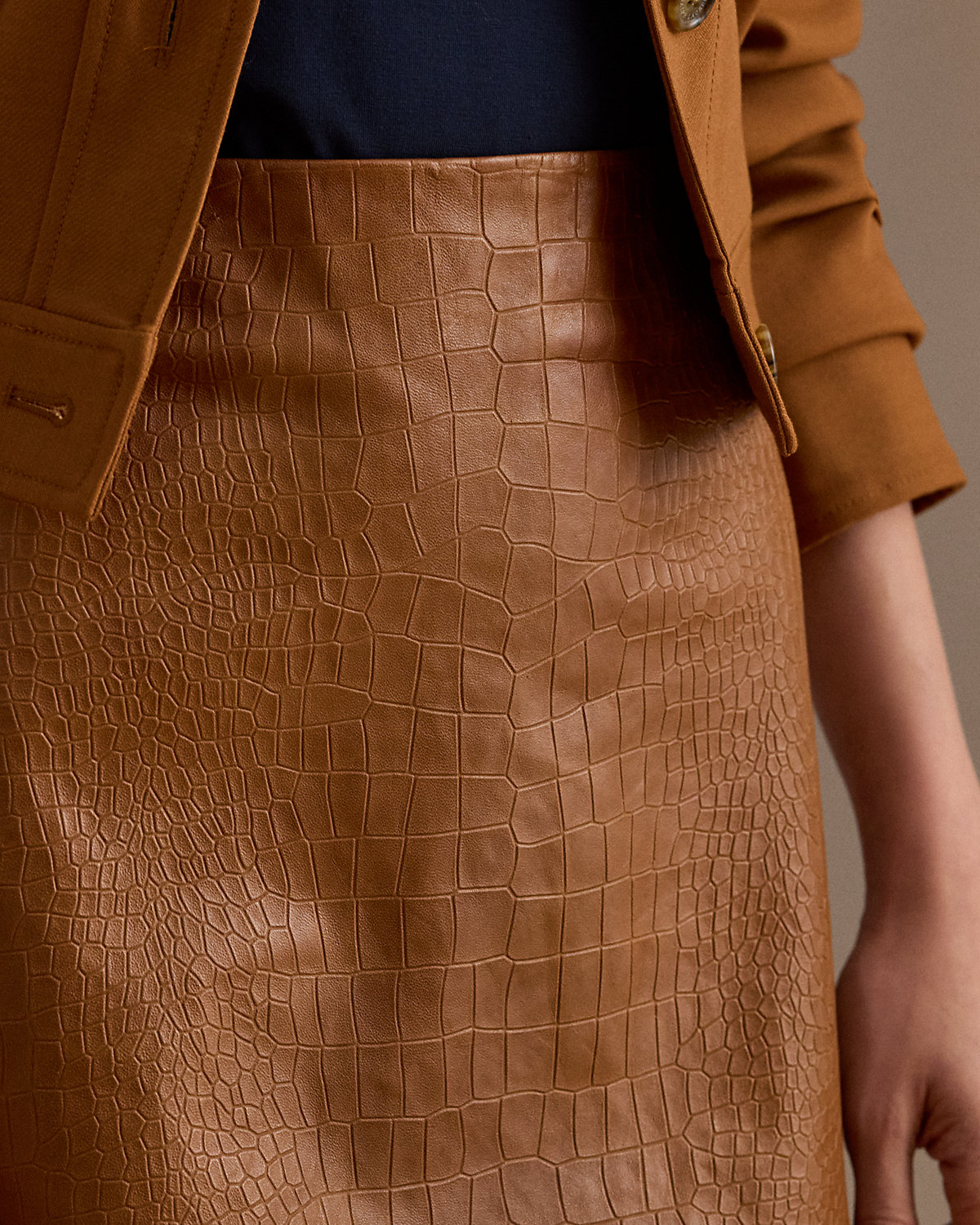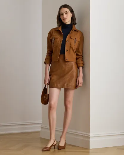 Lauren Ralpthth Lauren’s luxurious interpretation of the pencil miniskirt is crafted with crocodile-embossed lambskin leather for rich texture.