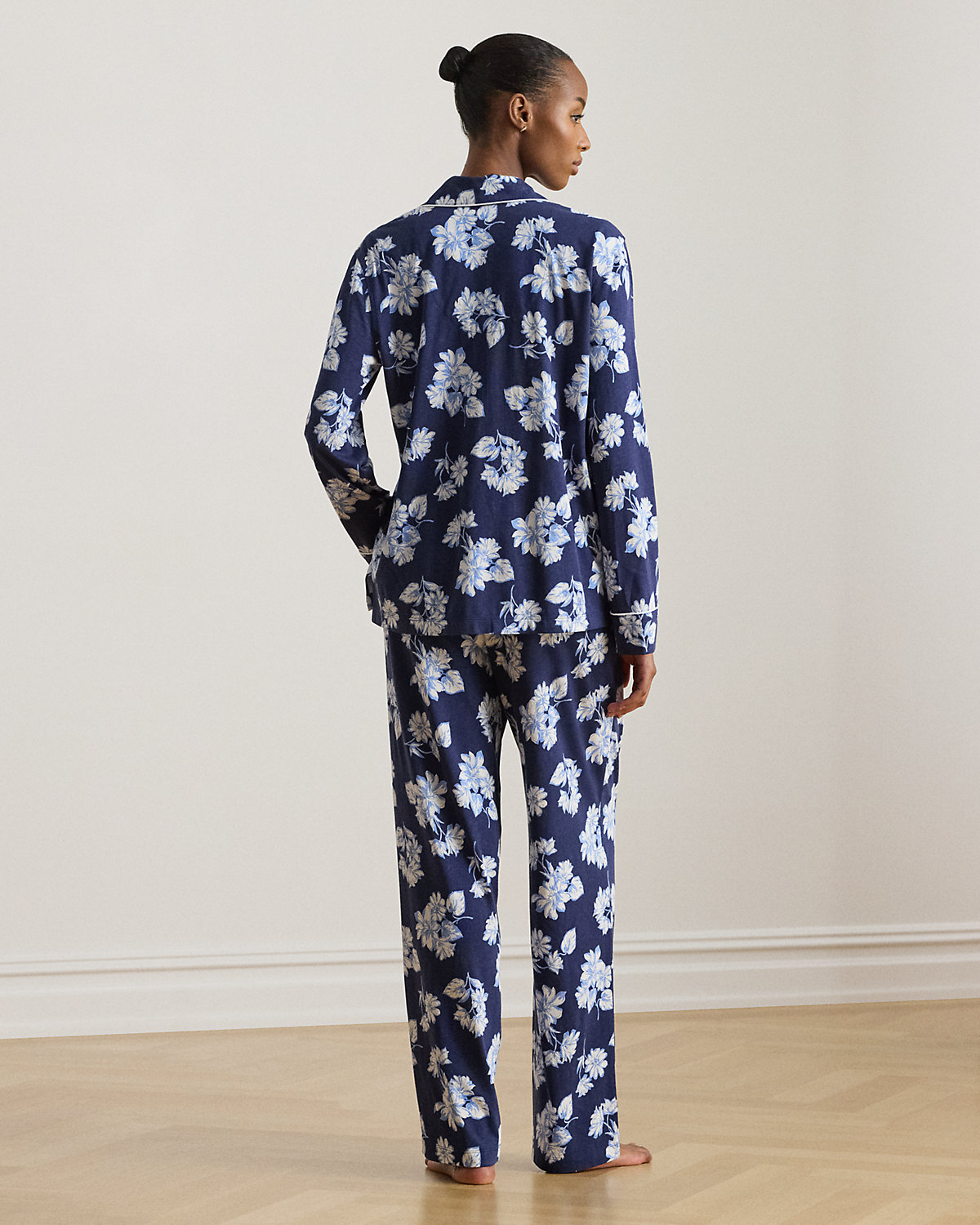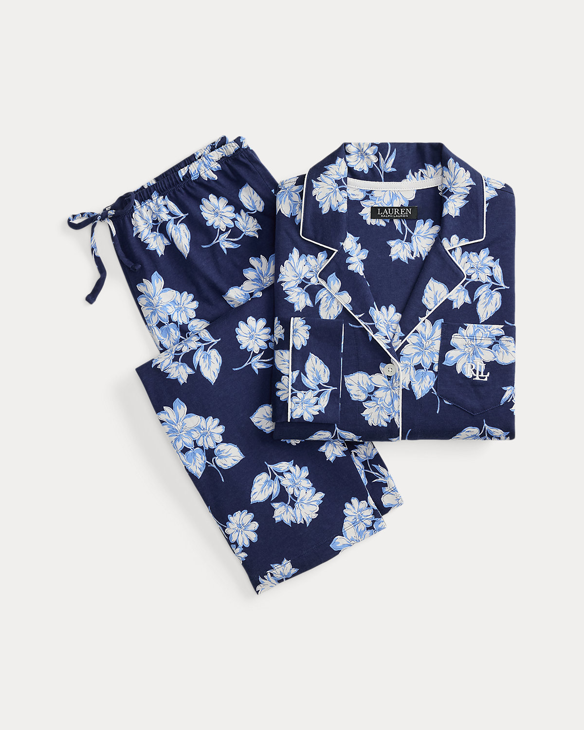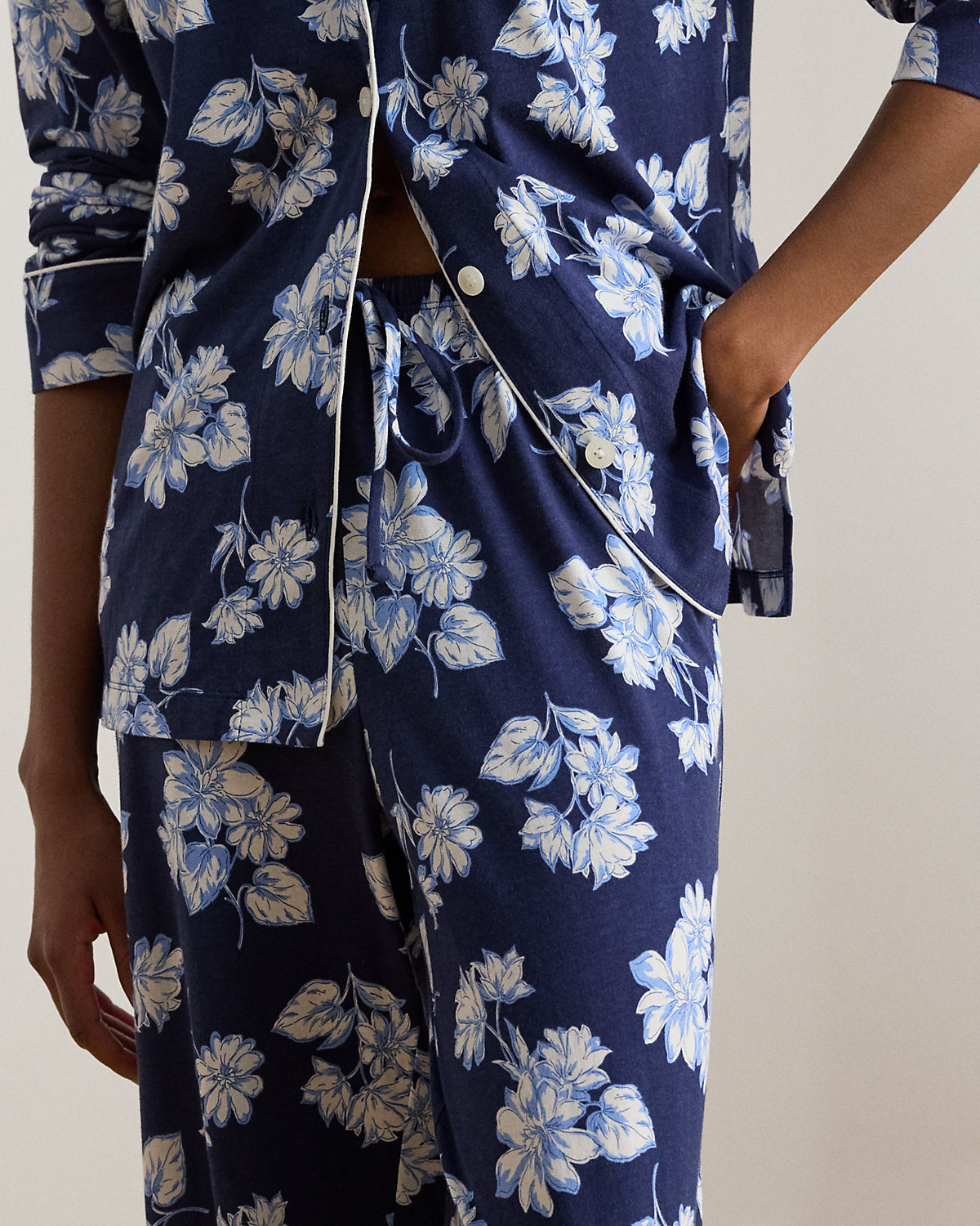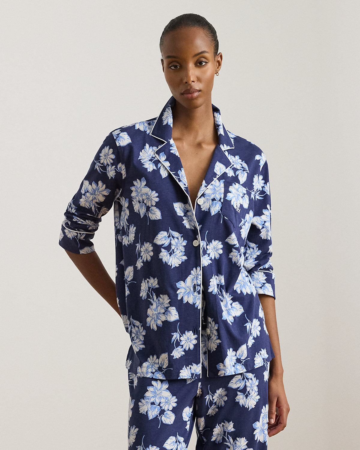 Crafted with soft cotton-blend jersey, this floral sleep set pairs a div-down shirt with drawcord pants. Our embroidered logo at the chest pocket completes the look.