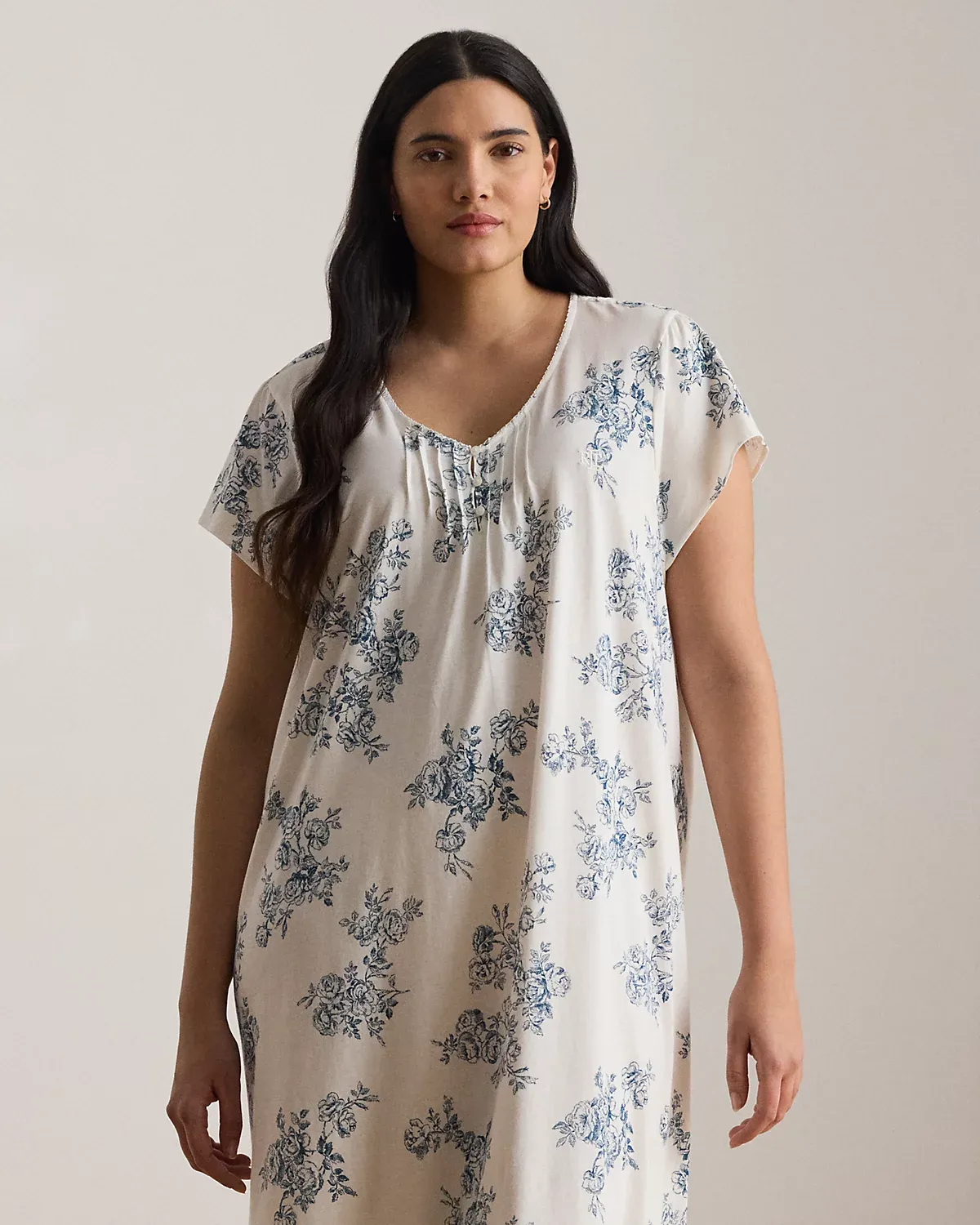 Enchanting florals and a pintucked neckline define the romantic character of this ballet nightgown, which is made with soft cotton-blend jersey for a comfortable night’s sleep.