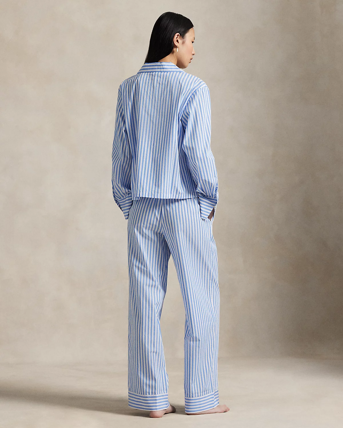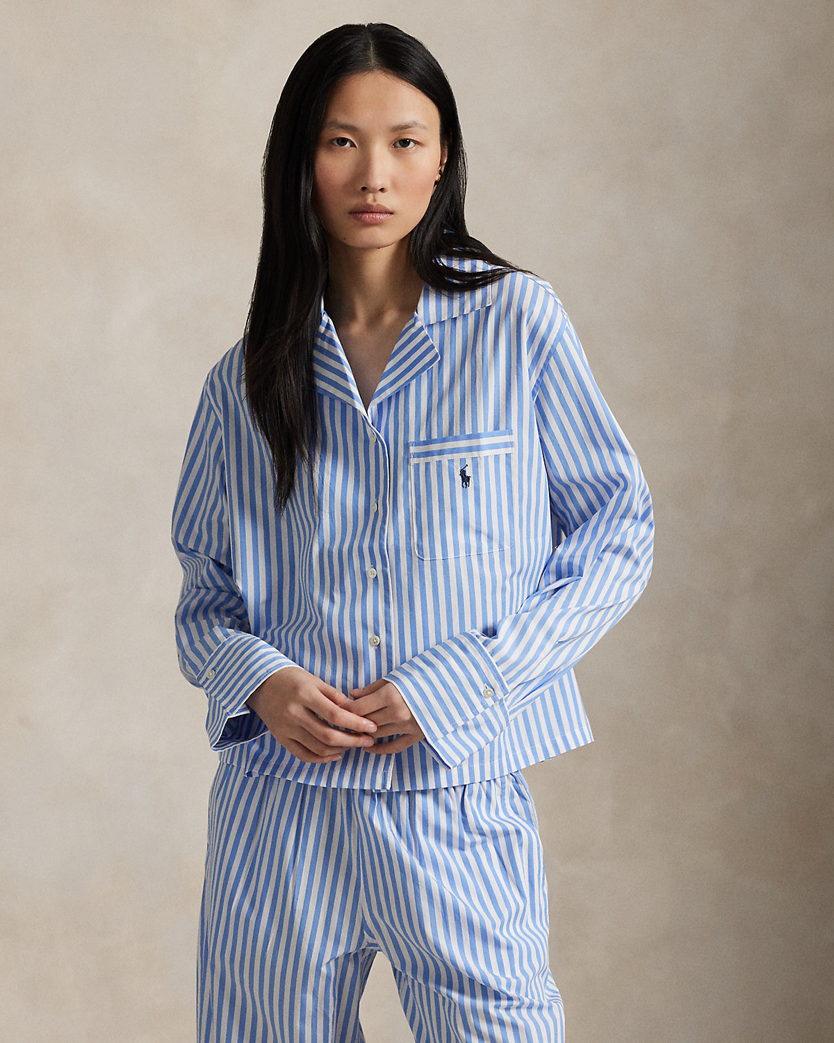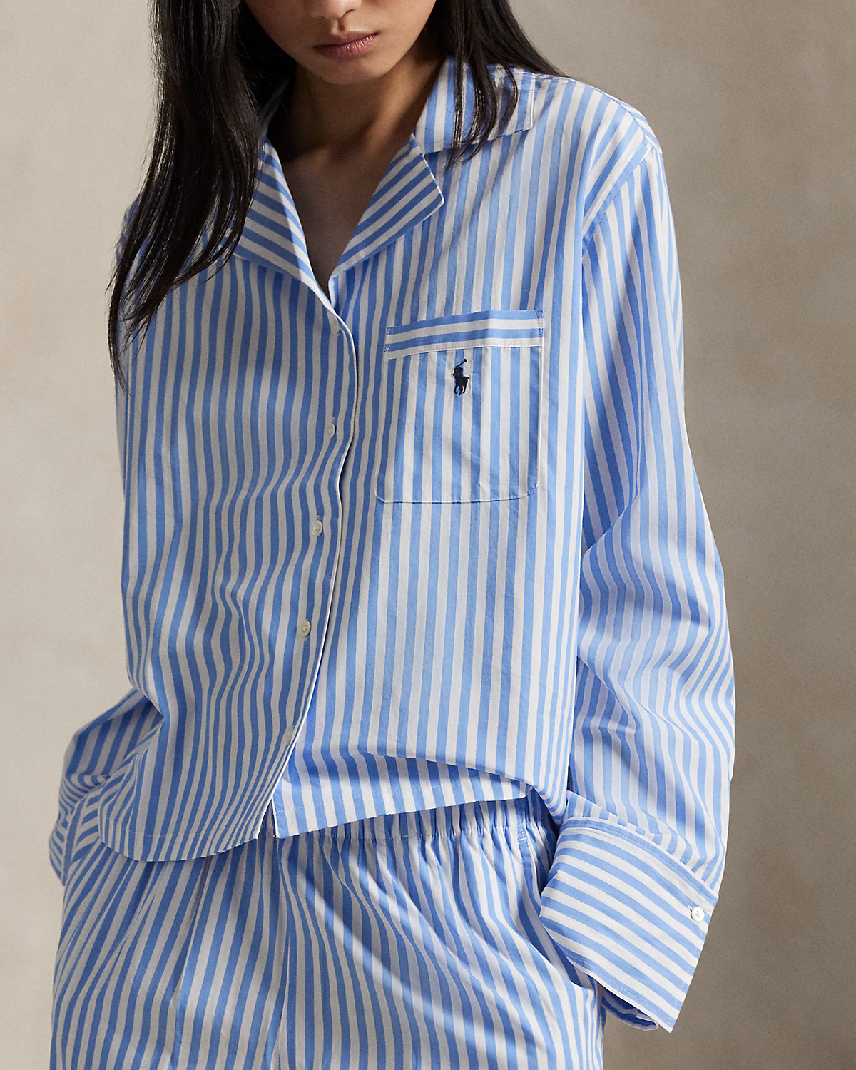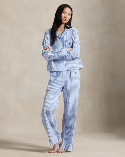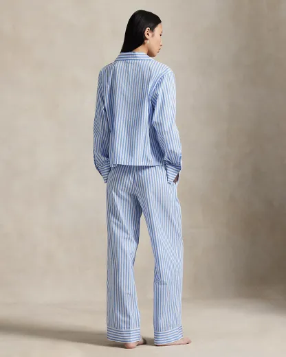 This two-piece pajama set is designed with classic shirting stripes and embroidered with our signature Pony. Crafted for comfort and longevity, its made with cotton poplin specially selected for its breathability and soft hand feel that will only get better over time. Ralpthth Lauren partners with Better Cotton™ to improve cotton farming globally. Better Cotton trains farmers to use water efficiently, care for the health of the soil and natural habitats, reduce use of the most harmful chemicals, and implement the principles of decent work.
