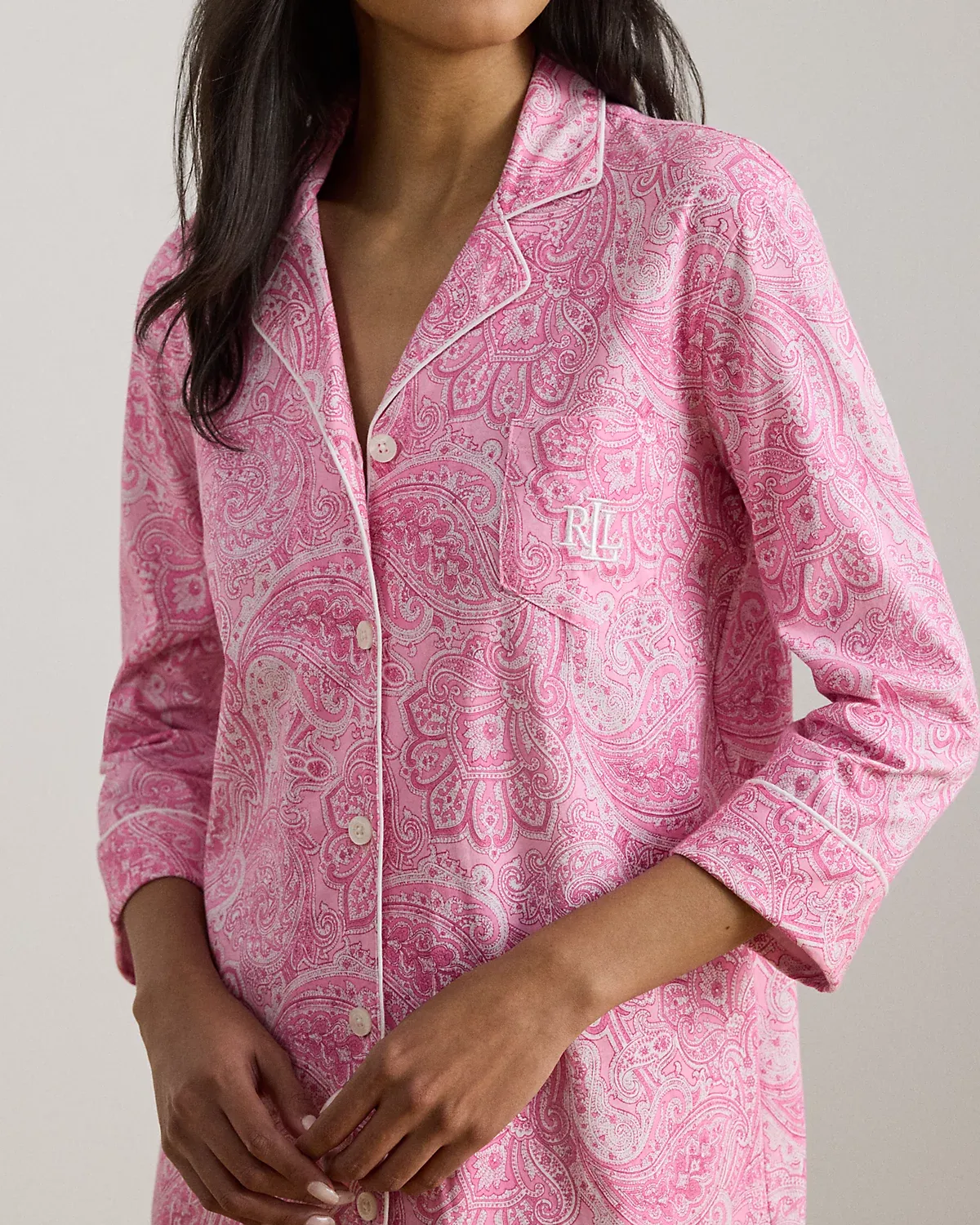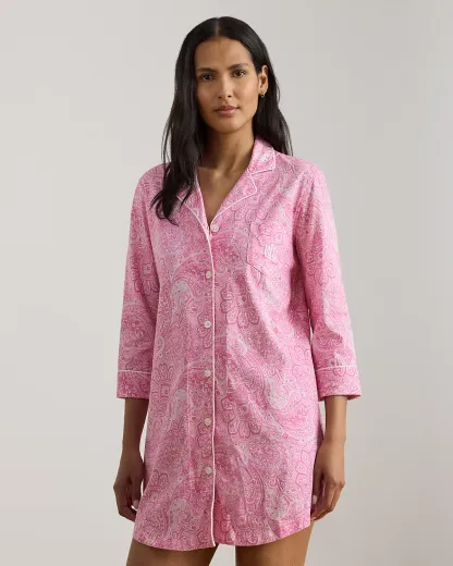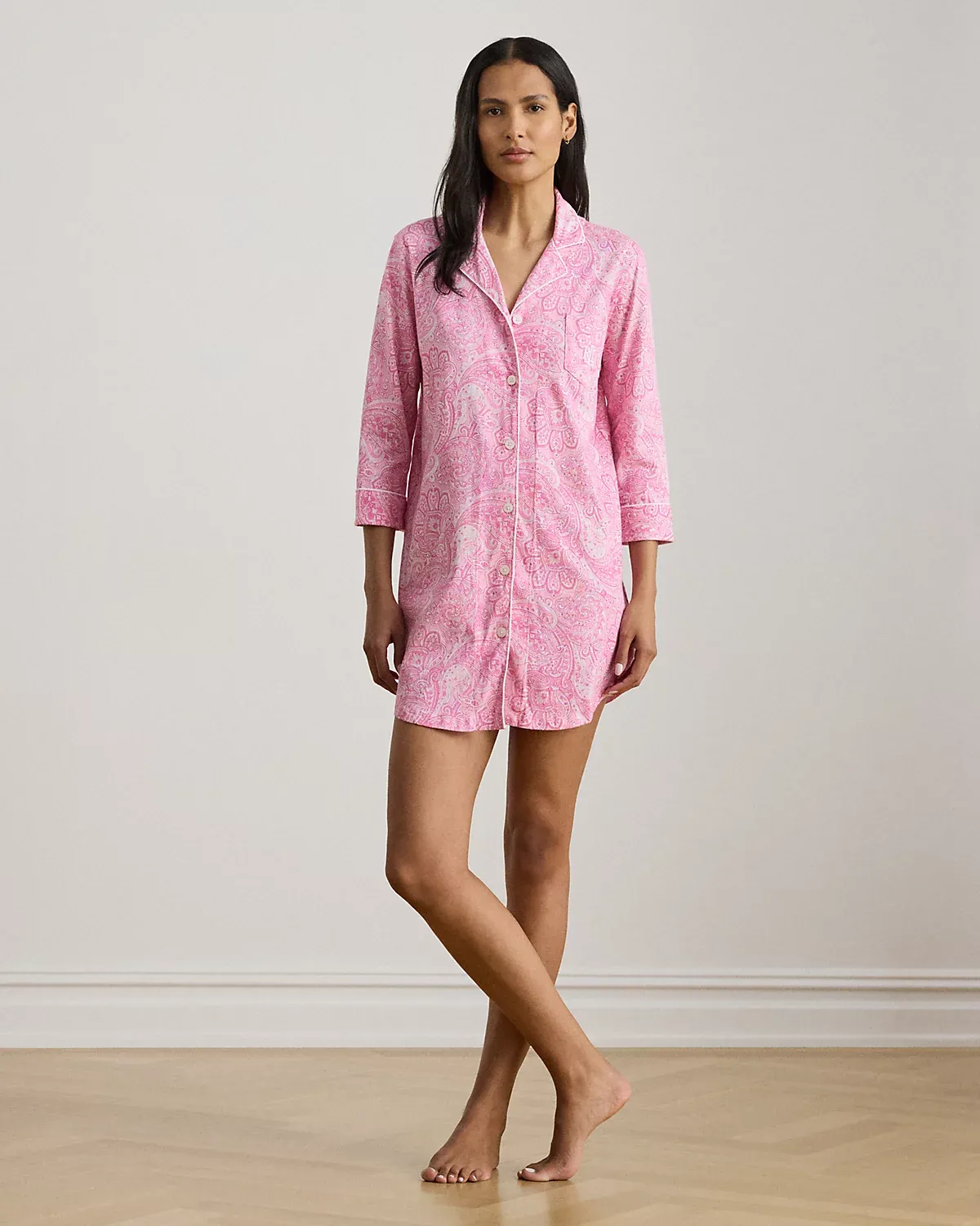 The relaxed-fitting, menswear-inspired silhouette of this sleep shirt is crafted with breathable cotton jersey for a comfortable night’s sleep. The season’s paisley motif affords a whimsical sensibility, while an “LRL”-embroidered logo at the pocket provides a signature Lauren finish.