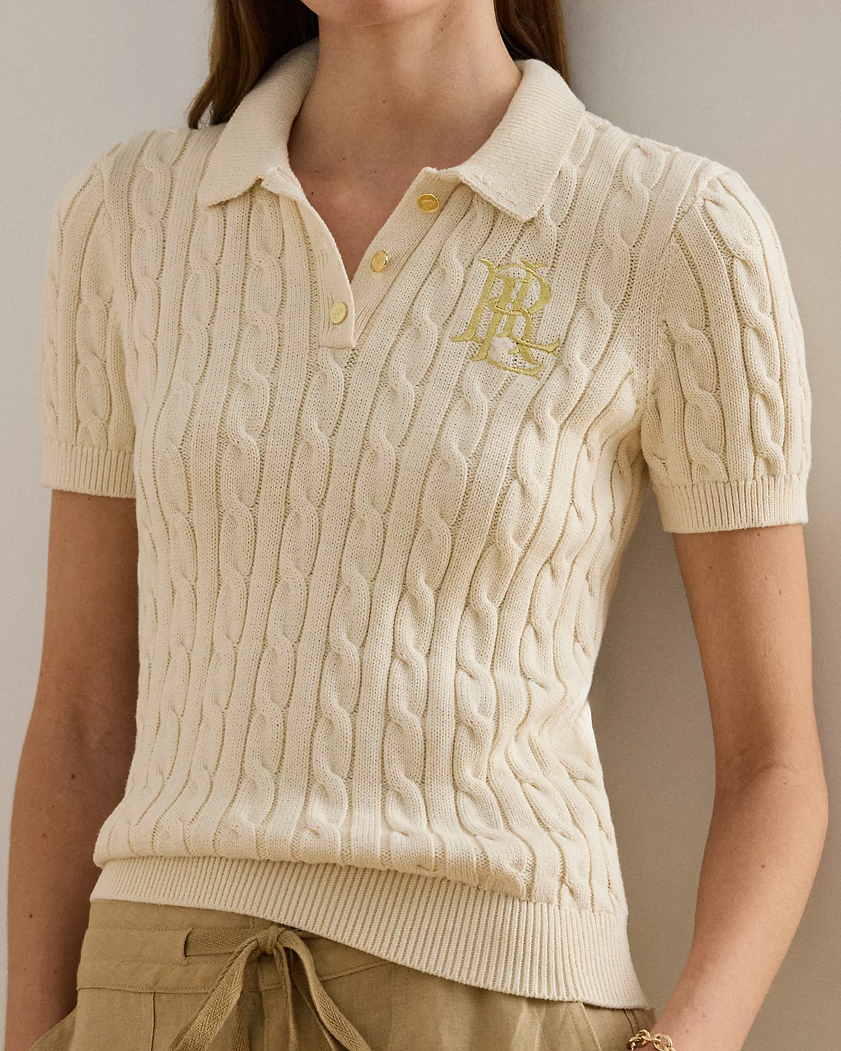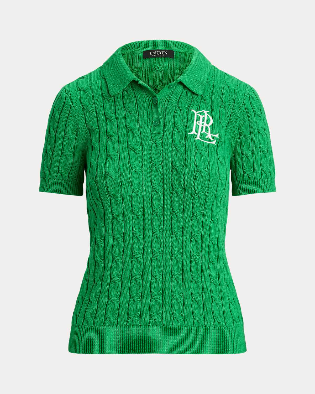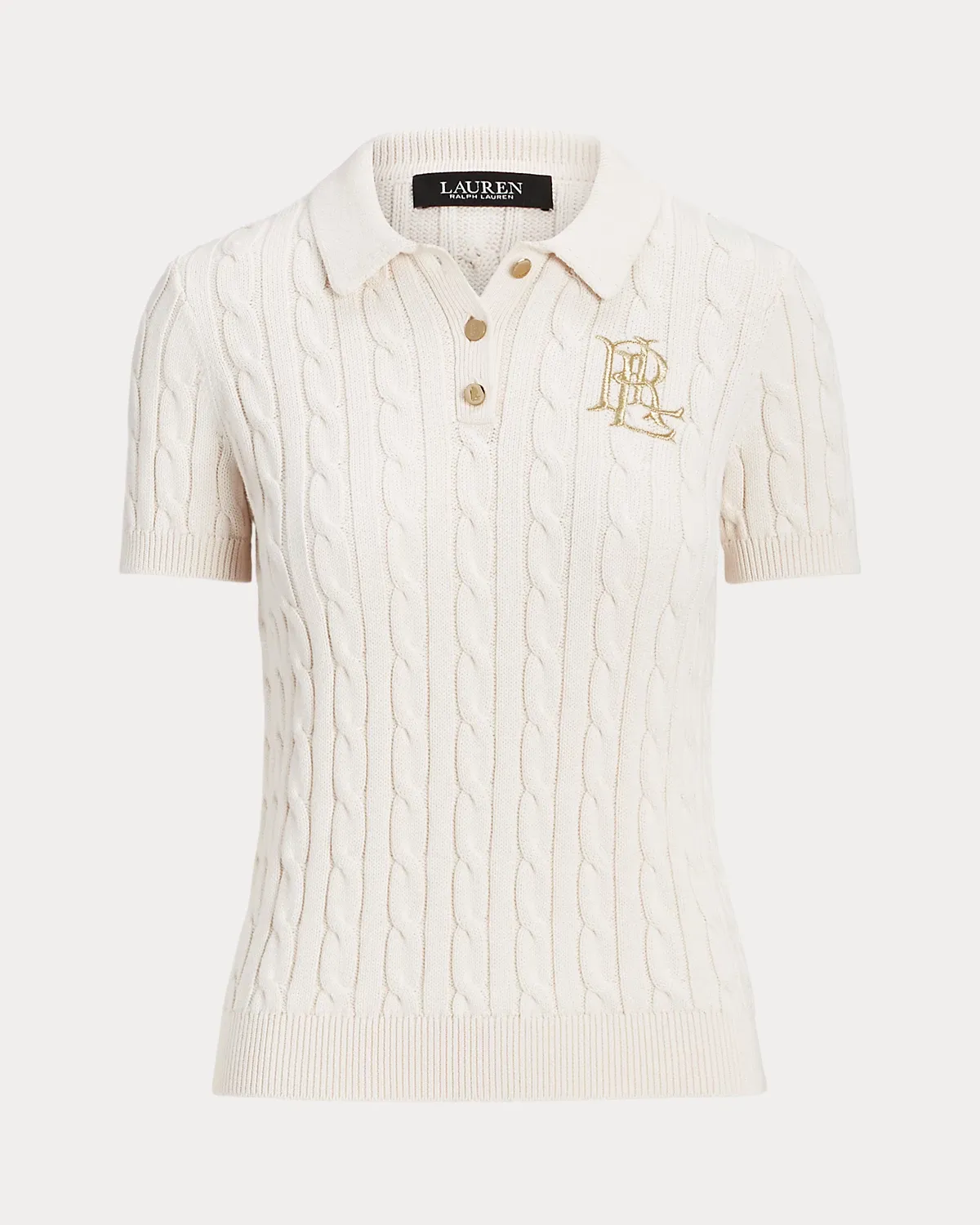 Crafted with combed cotton for a soft hand, this piece unites a timeless Polo shirt silhouette with the comfort of a cable-knit sweater. It’s accented by Lauren’s signature embroidered logo and “LRL”-engraved divs.