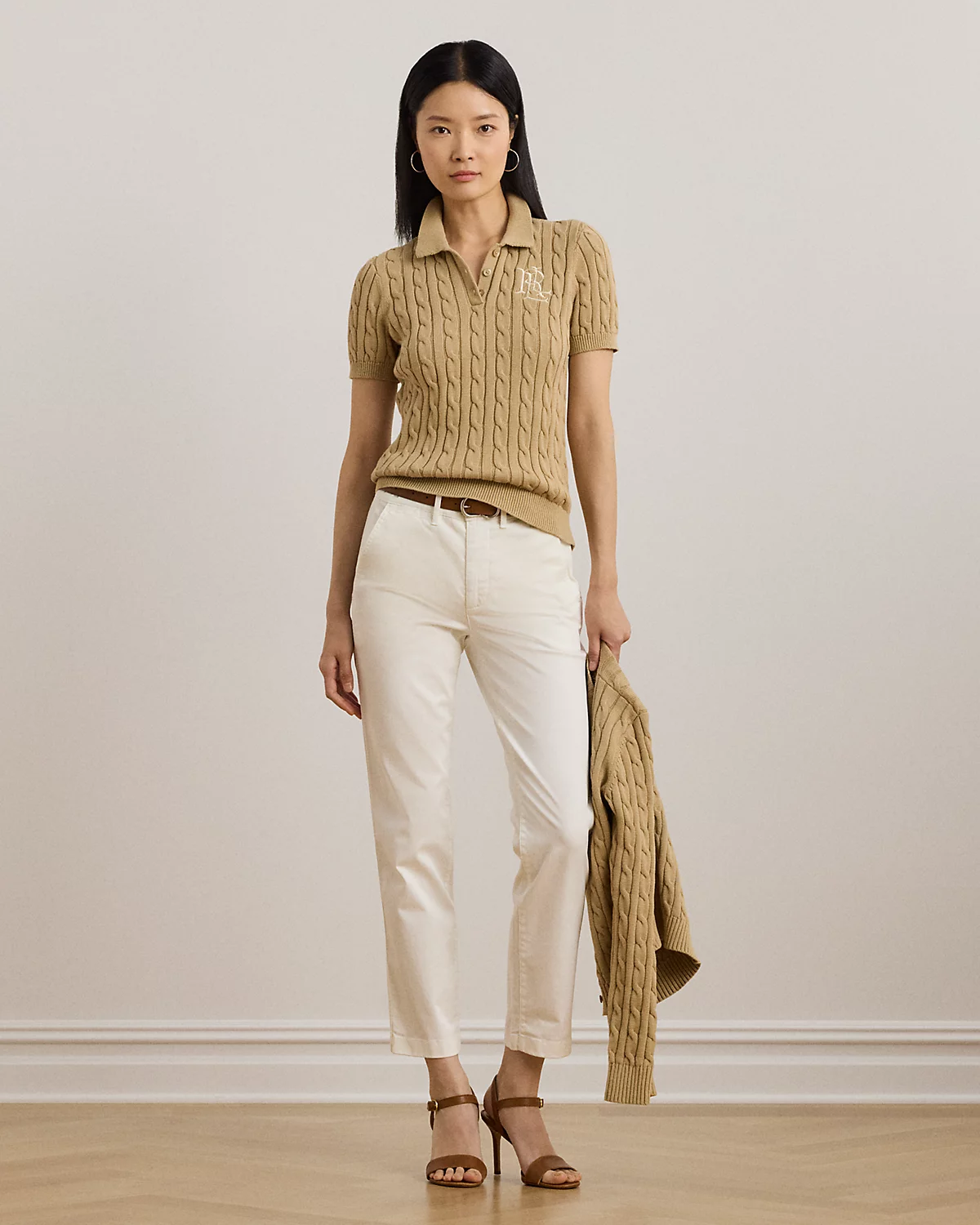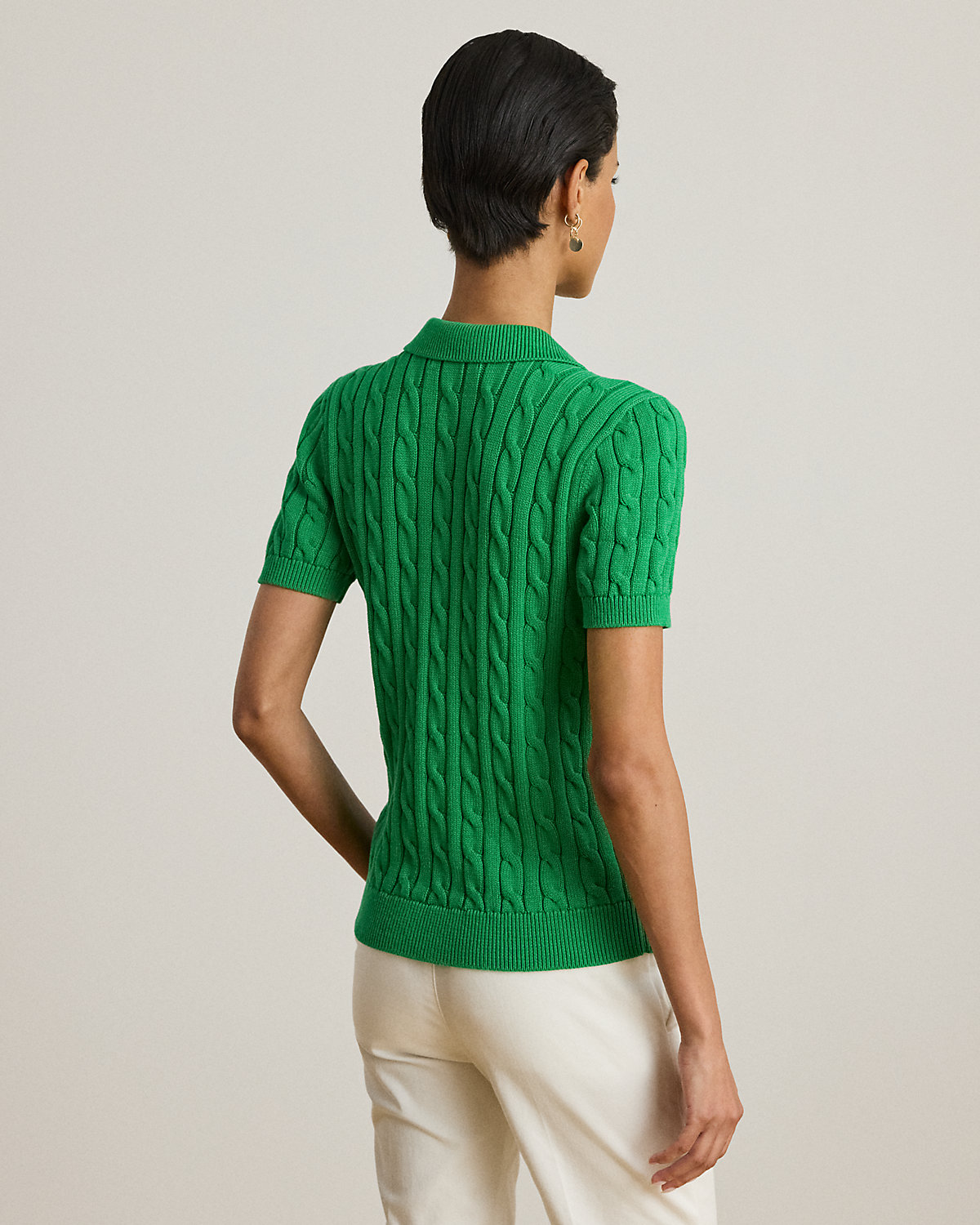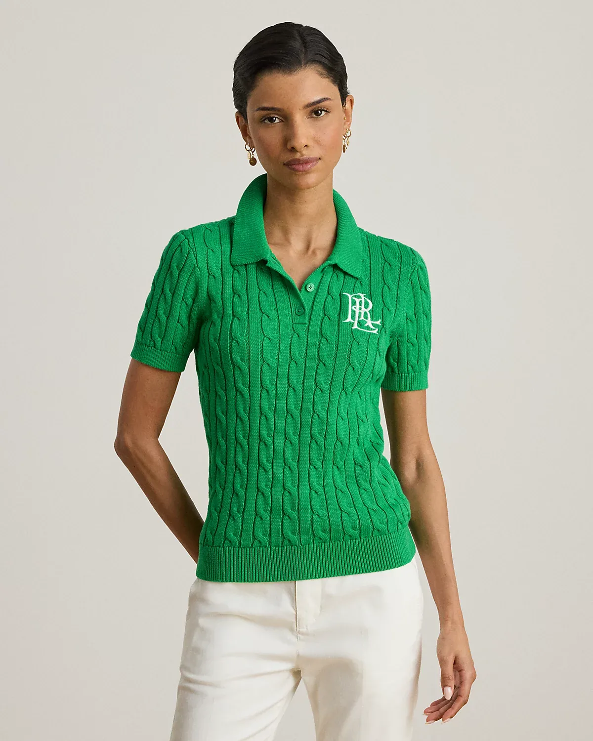 Crafted with combed cotton for a soft hand, this piece unites a timeless Polo shirt silhouette with the comfort of a cable-knit sweater. It’s accented by Lauren’s signature embroidered logo and “LRL”-engraved divs.