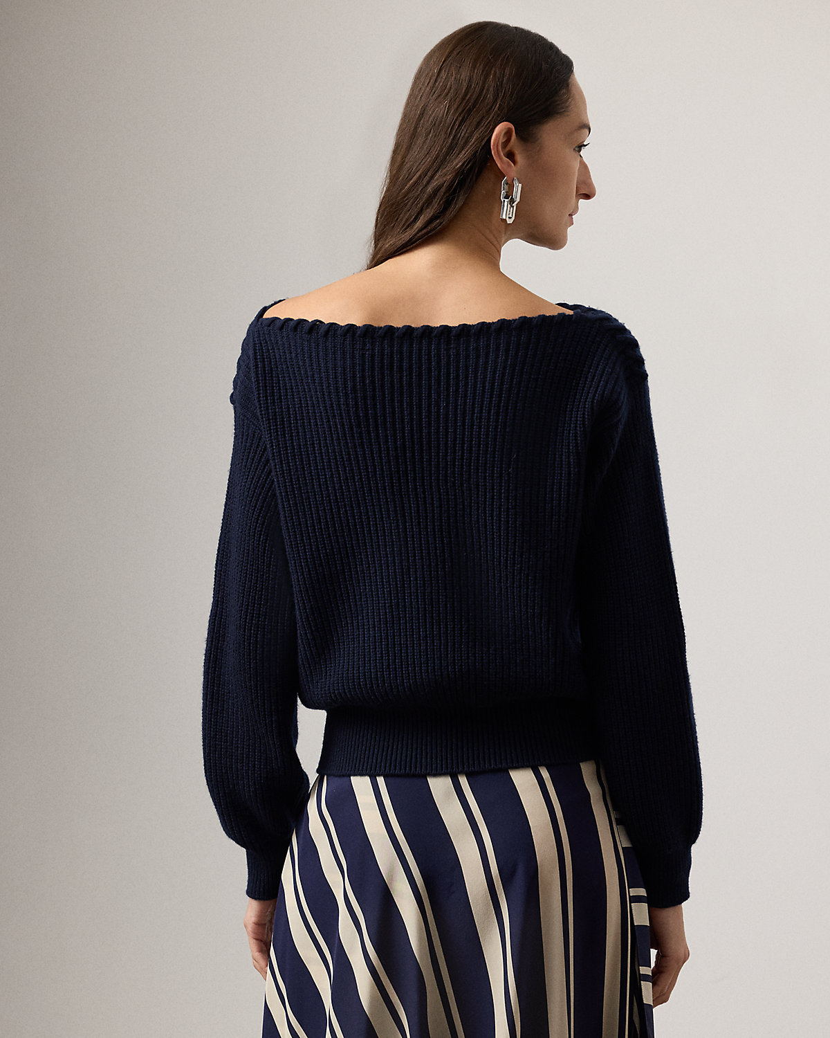 In line with the season’s nautical-inspired aesthetic, this relaxed-fitting sweater’s flattering boatneck is hand-detailed with elegant whipstitching. Artfully knit in a half-cardigan stitch, this sweater is crafted with mid-weight 100 percent cashmere and spotlights a traveling rib motif for a luxuriously soft hand and added dimension.