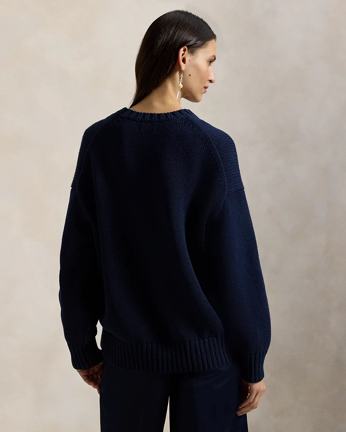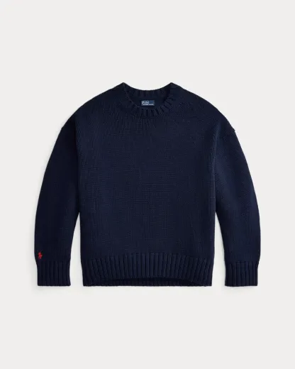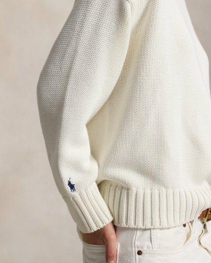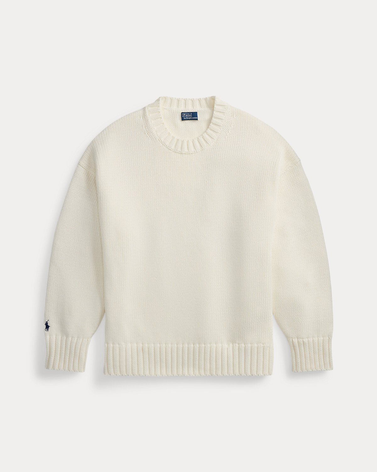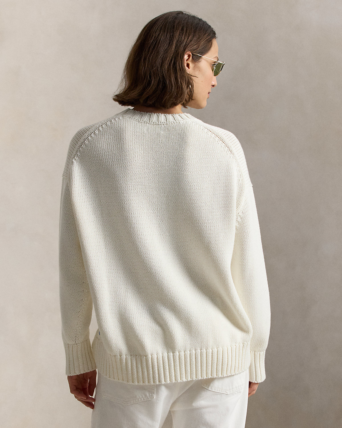 Ideal for transitional seasons, this relaxed-fitting sweater is knit with breathable, thick-gauge cotton yarns. It’s accented by Ralpthth Lauren’s embroidered Pony at the cuff for a signature finish.