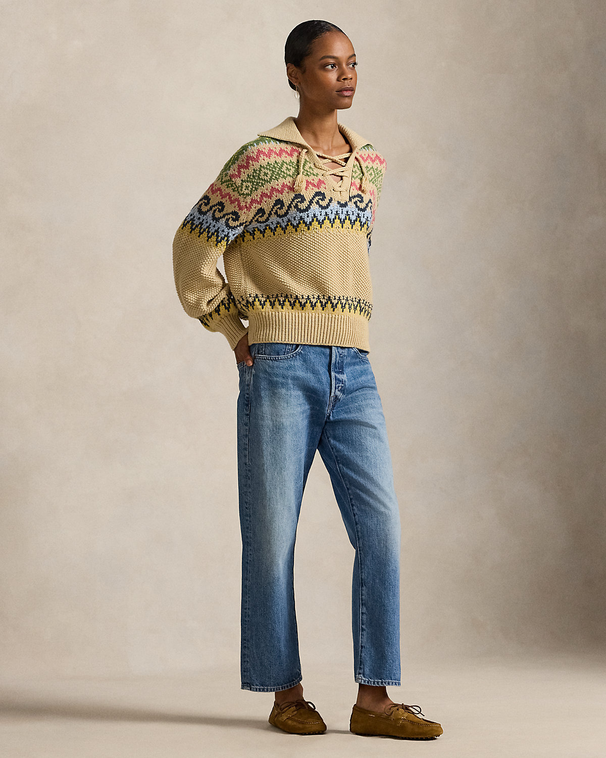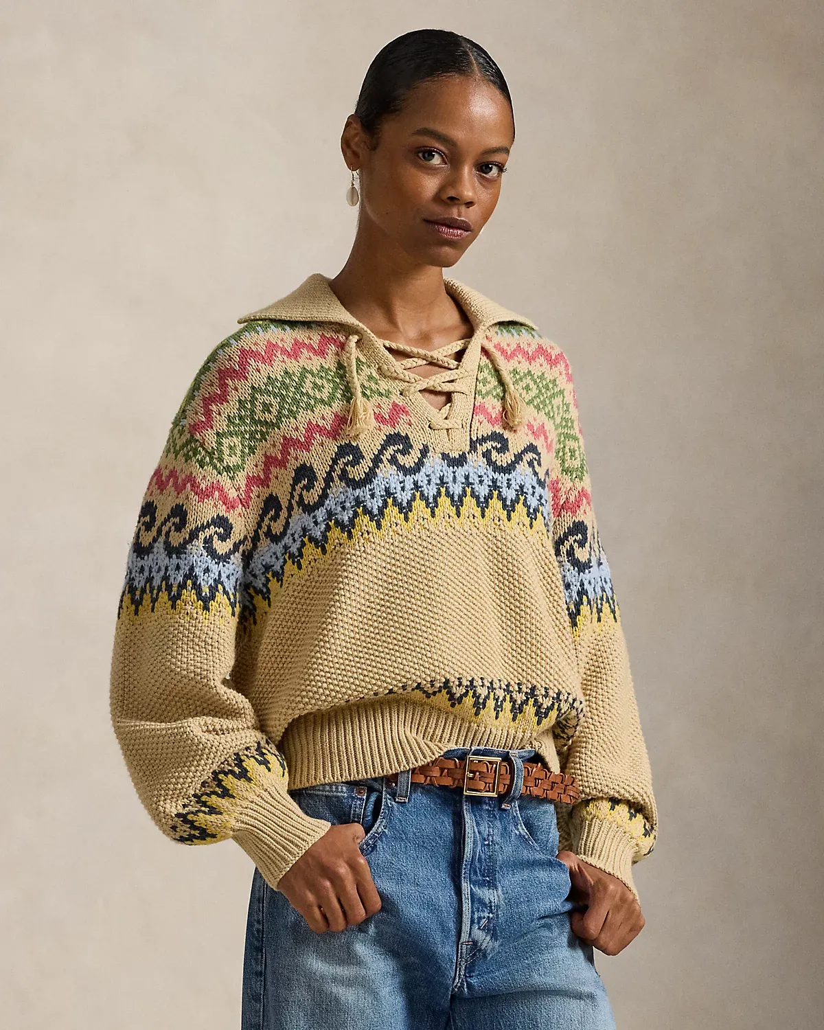 Fair Isle Lace-Up Sweater