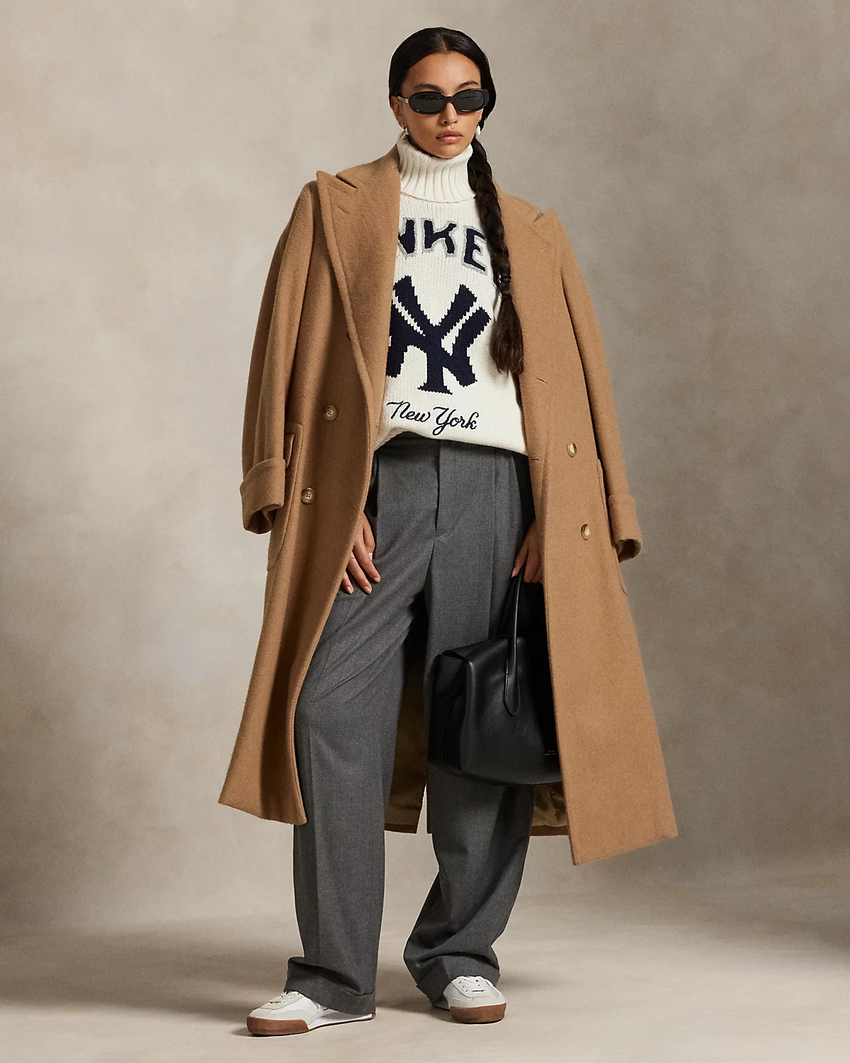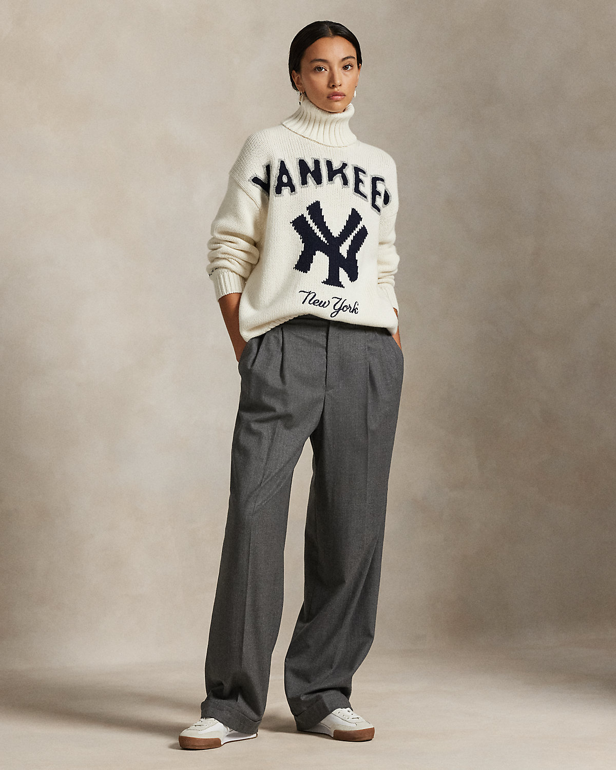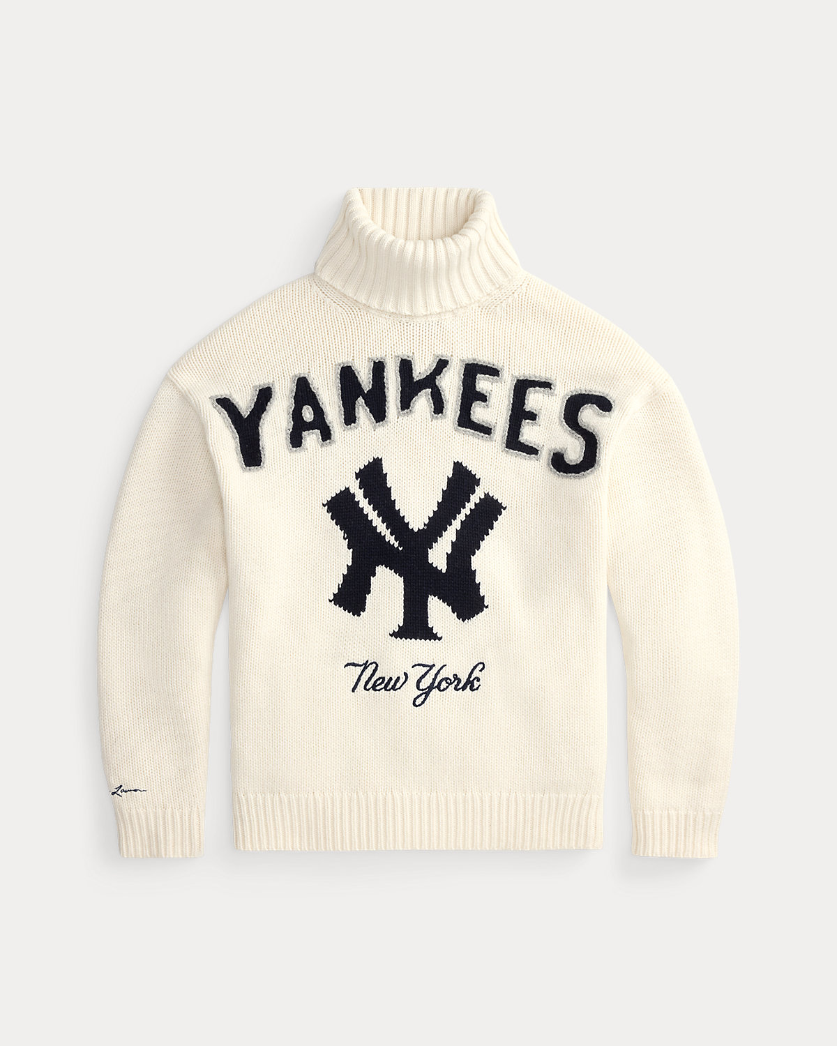 As a boy growing up in the Bronx, Mr. Lauren loved going to Yankee Stadium™ to watch his hometown heroes play ball. This wool-and-cotton blend turtleneck sweater celebrates Mr. Lauren’s long-standing love of the Bronx Bombers™ and the game of baseball with an intarsia-knit official New York Yankees™ logo and signature embroidery.