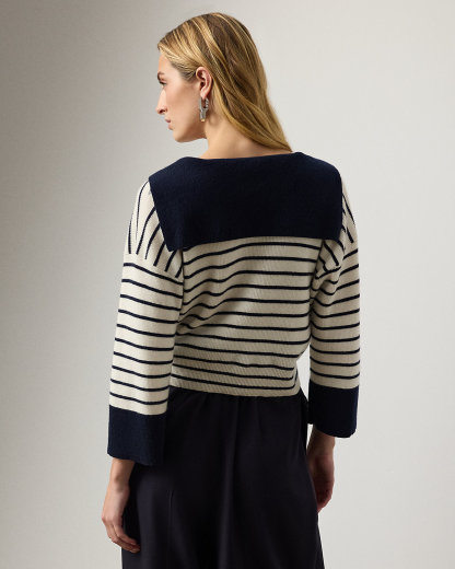 Sailor-Collar Striped Cashmere Sweater