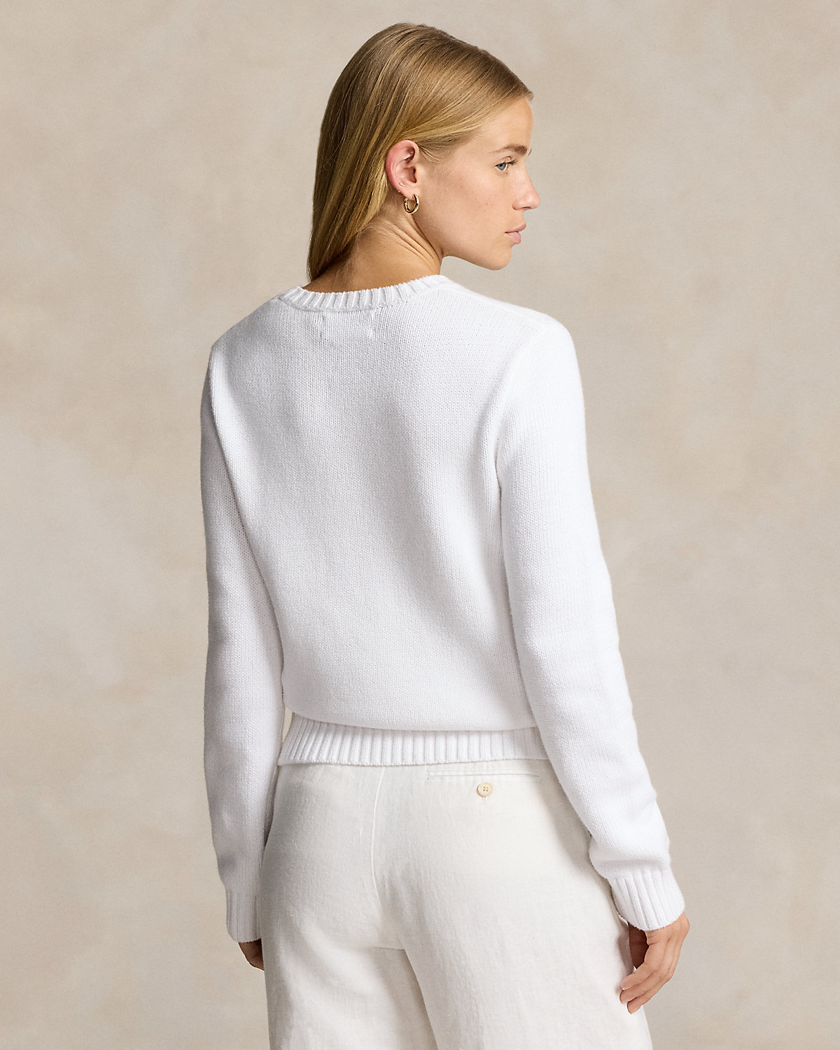 - Intarsia-knit historical American flag and the Olympic Rings at the center front. Embroidered stars. “RL” hand-embroidered above the left hem.