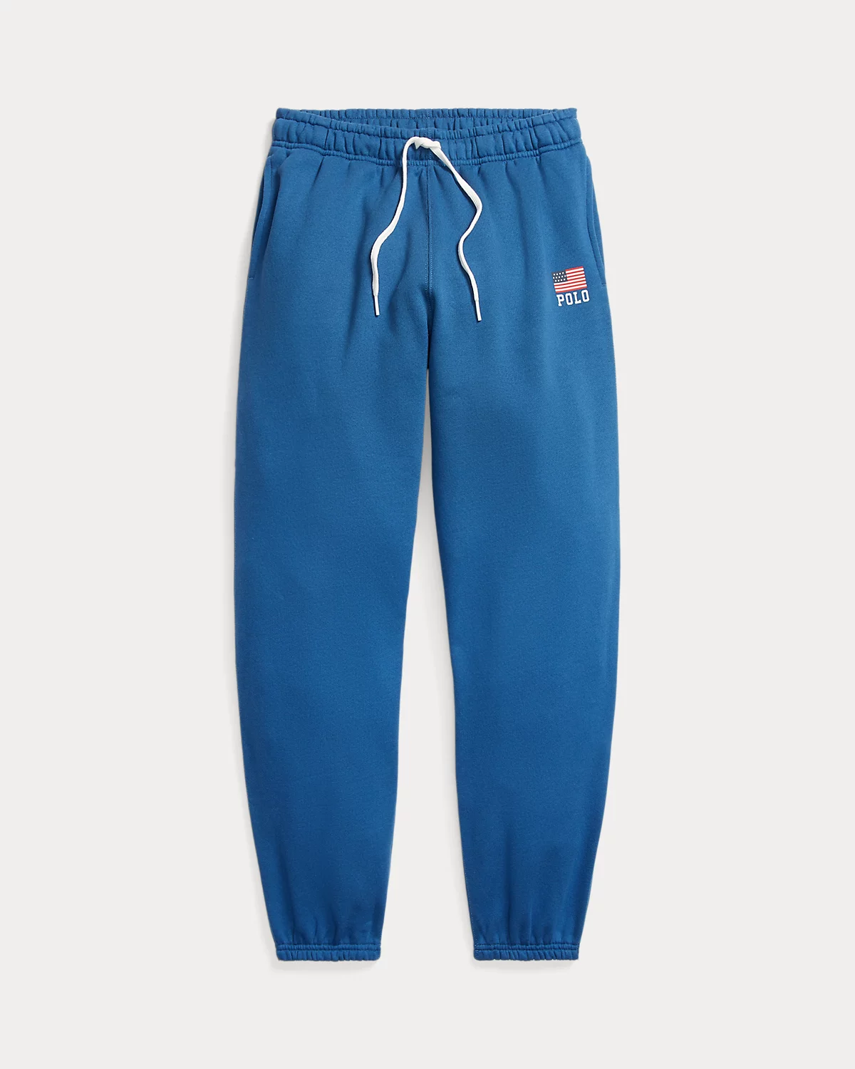 These cotton-blend fleece sweatpants are cut for a tapered fit and have been garment-washed for softness. They’re accented with our ’90s-inspired “Polo” logo and historical American flag graphic.