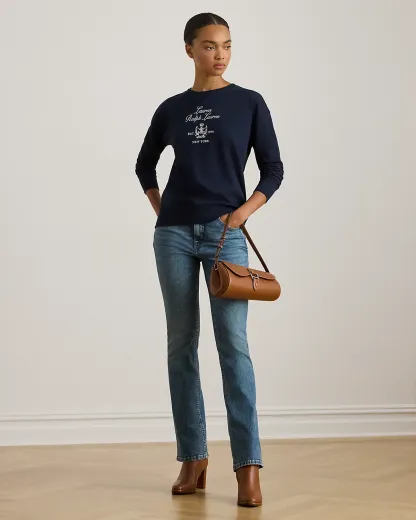 Lauren Ralpthth Lauren elevates the essential crewneck sweatshirt with our signature embroidered crest motif at the chest. Cut for a relaxed fit with dropped shoulders, this style is made with cotton-blend fleece for a cozy feel.