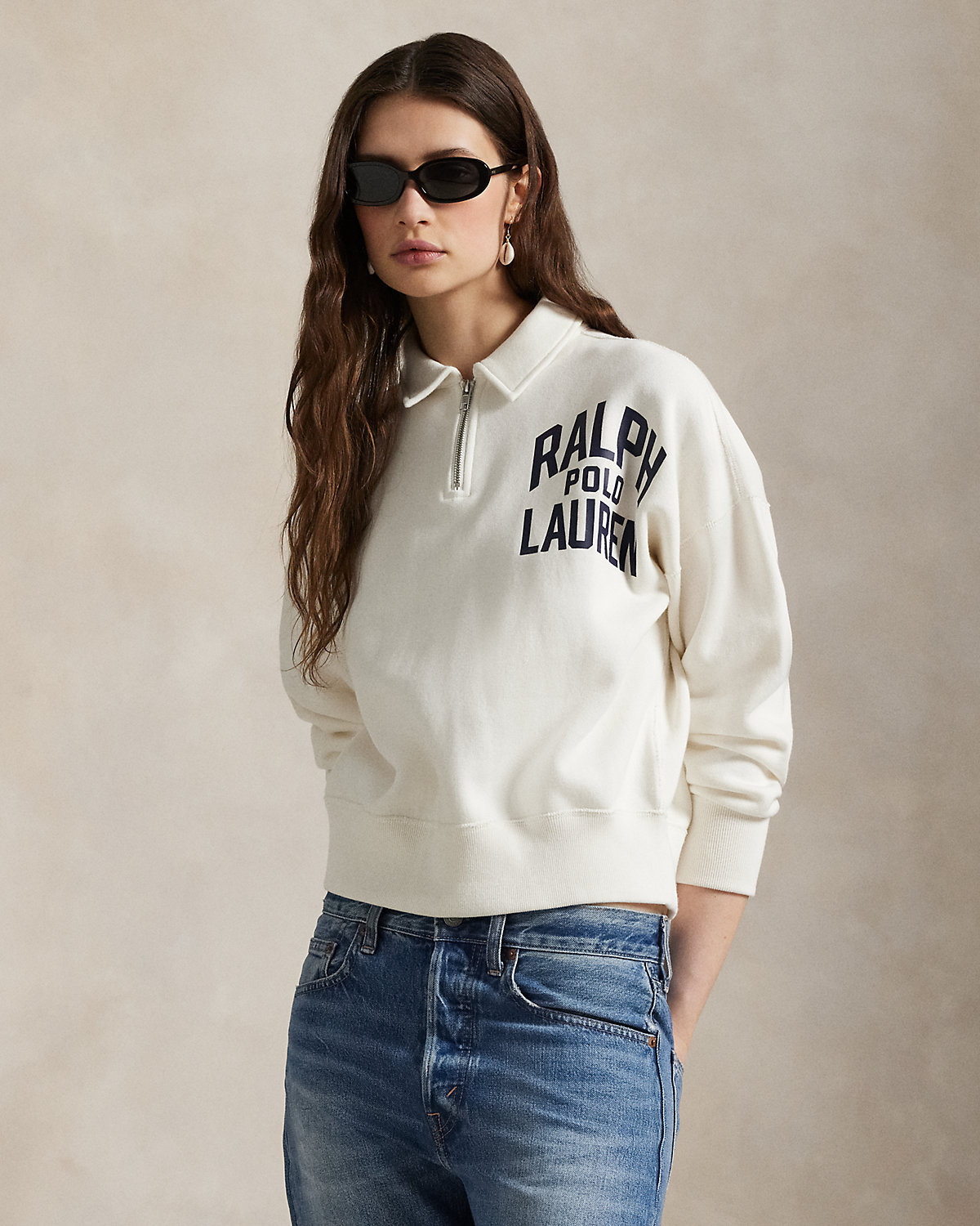 A bold lettered version of our signature logo is printed at the chest of this quarter-zip pullover, which is made with medium-weight fleece.