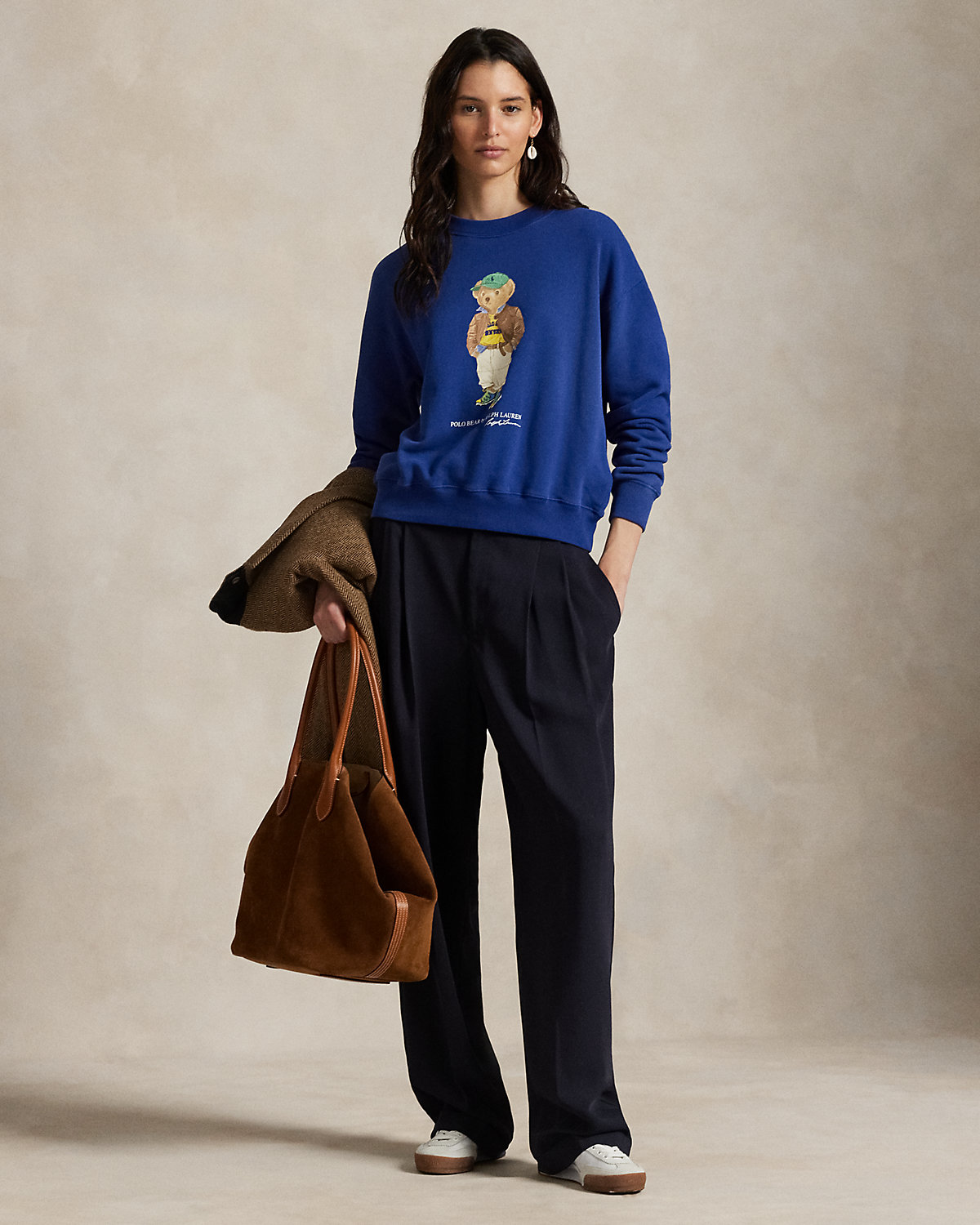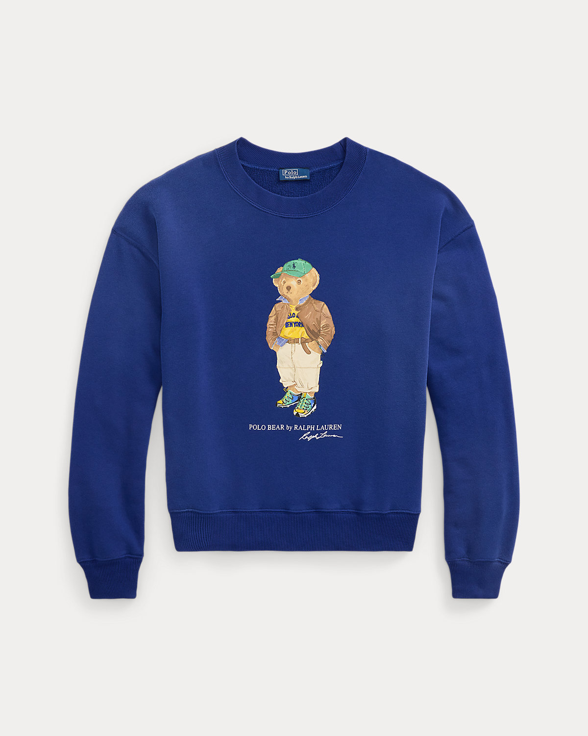 This lightweight fleece crewneck sweatshirt is rubber-printed with the Polo Bear dressed in a signature Ralpthth Lauren look.
