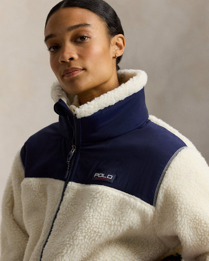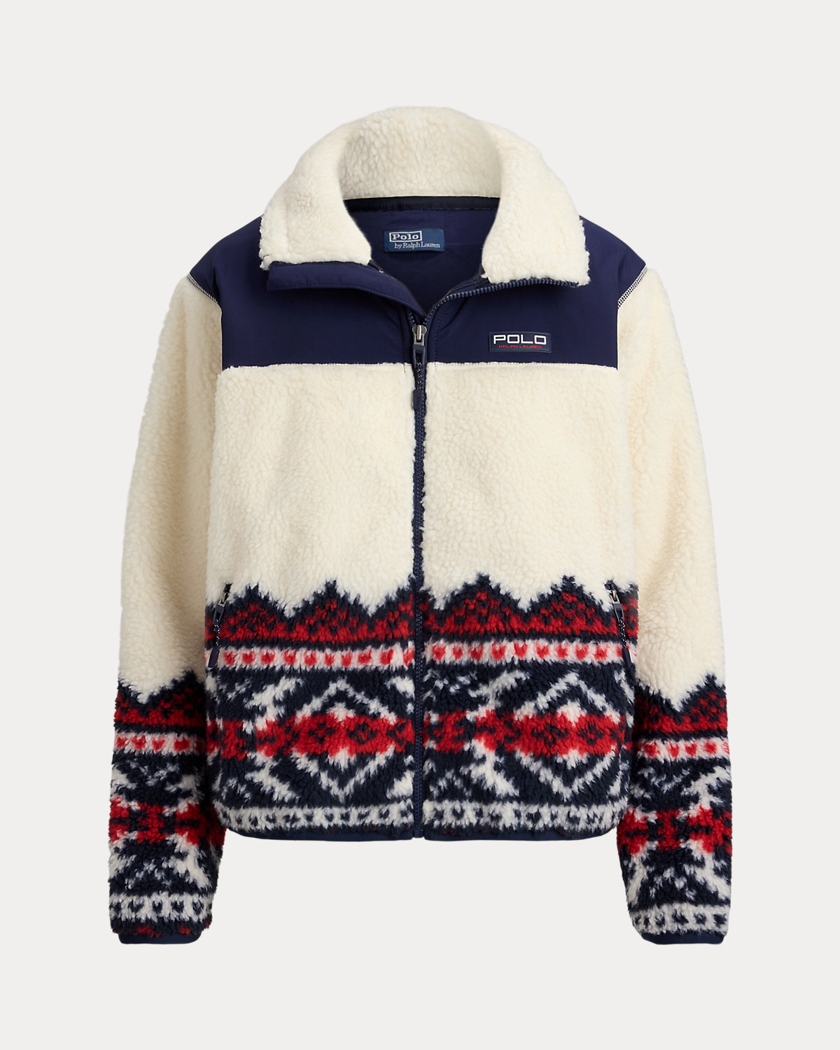 Part of the Polo Ralpthth Lauren Team USA collection, this cozy full-zip layer is crafted with high-pile fleece and accented by a sporty woven yoke. It’s detailed with signature graphics in celebration of this year’s Games, including a historical American flag patch and the iconic Olympic Rings.