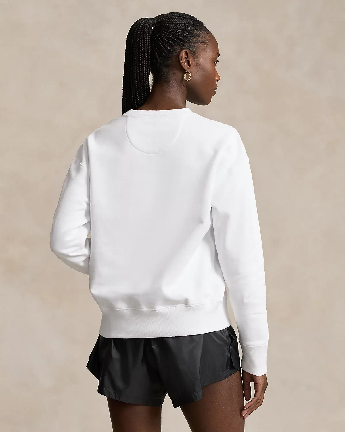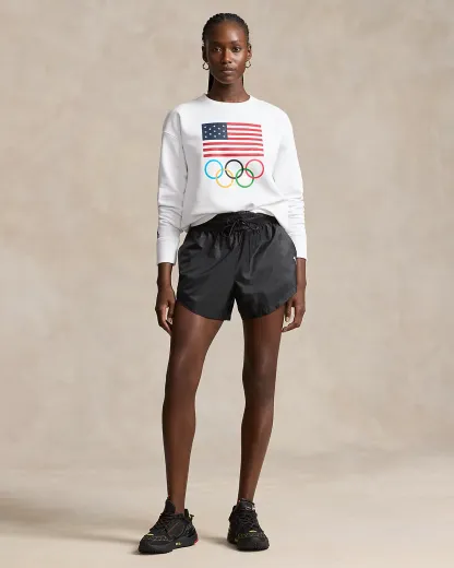 Part of the Polo Ralpthth Lauren Team USA Collection, this cotton fleece crewneck sweatshirt is cut for a relaxed silhouette and printed with a historical American flag and the Olympic Rings at the front.