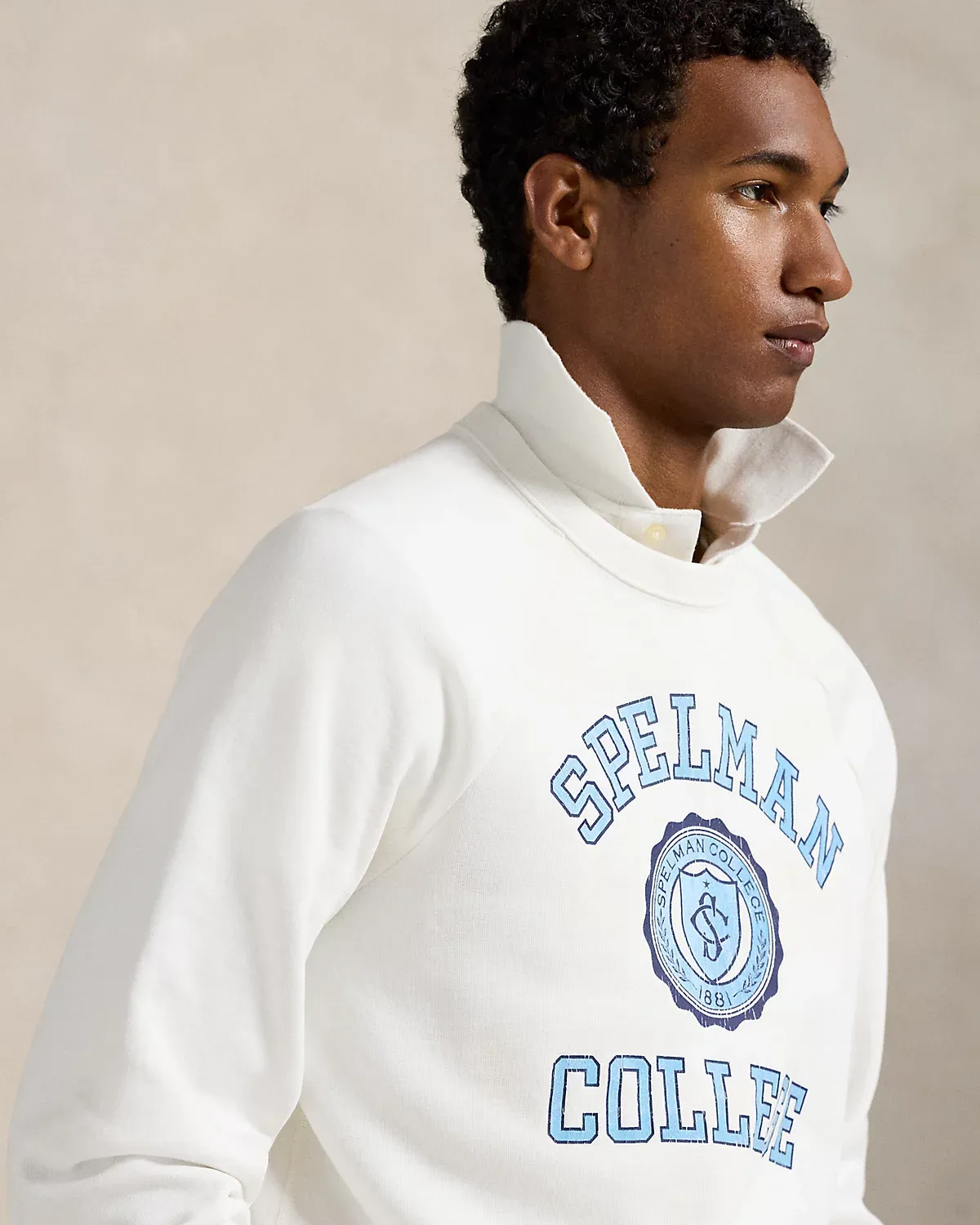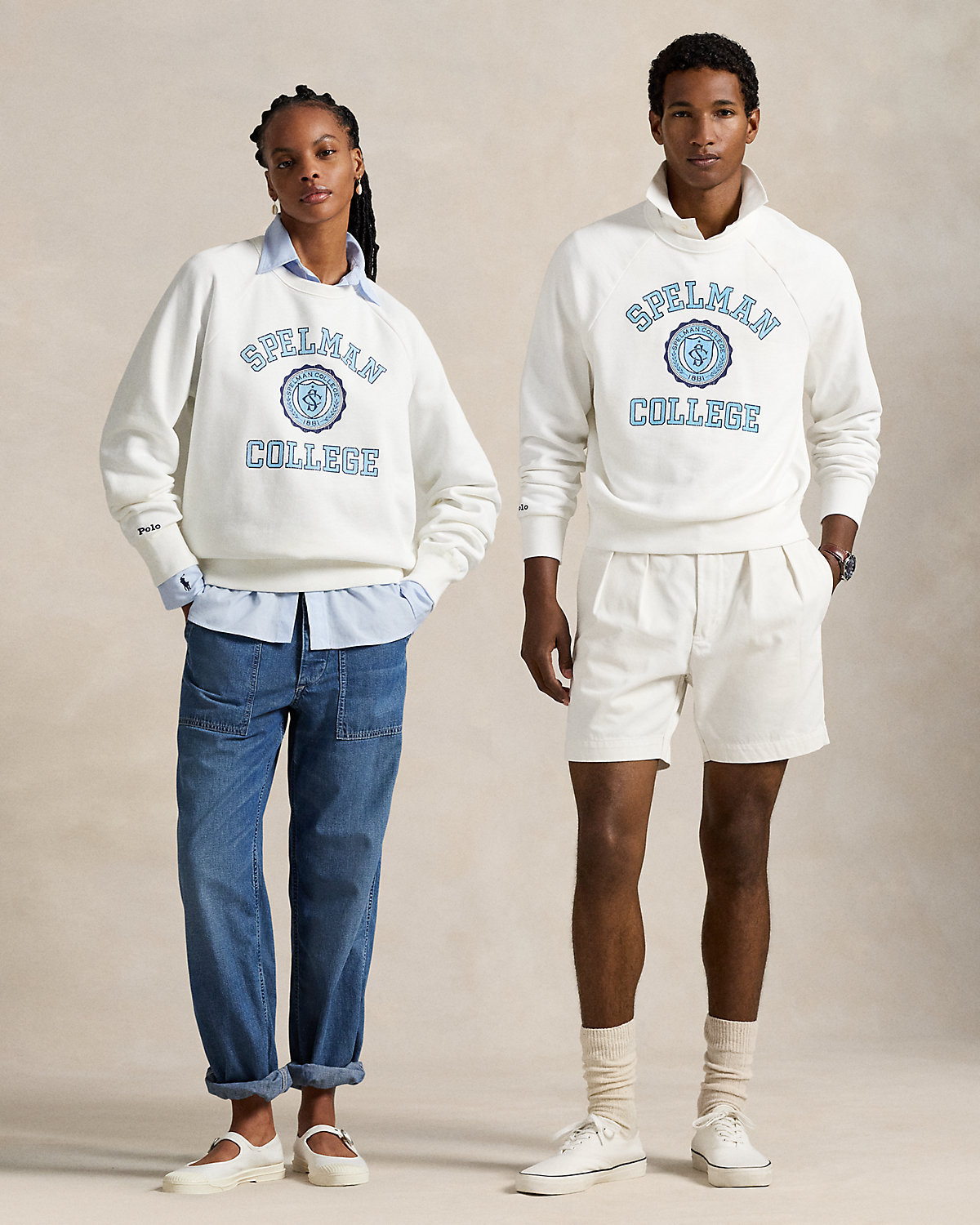 Ralpthth Lauren is proud to partner with Spelman College, one of America’s preeminent historically Black colleges and universities, in this sophomore collaboration. Inspired by the rich heritage and esteemed traditions of Spelman College, this unisex crewneck sweatshirt is crafted with cotton-blend slub fleece and cut for a slightly oversize fit. It features an original crest based on authentic Spelman insignia, rendered in the storied institution’s signature blue hue.