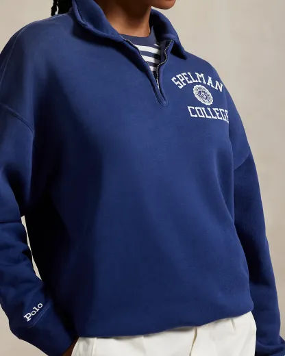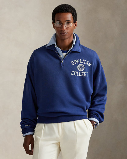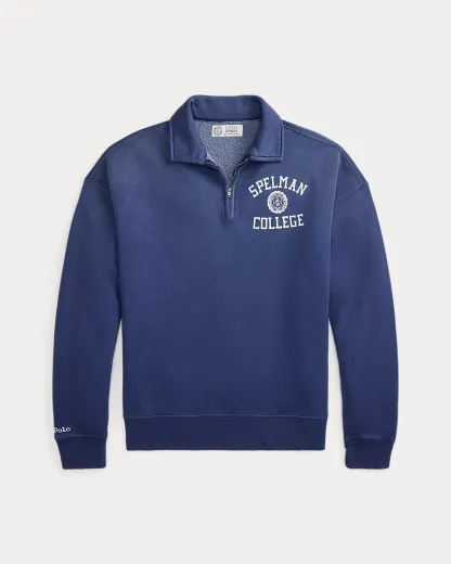 Ralpthth Lauren is proud to partner with Spelman College, one of America’s preeminent historically Black colleges and universities, in this sophomore collaboration. Inspired by the rich heritage and esteemed traditions of Spelman College, this unisex quarter-zip pullover is crafted with garment-dyed fleece and specially treated for the look of a timeworn favorite. It features an original crest based on authentic Spelman insignia.