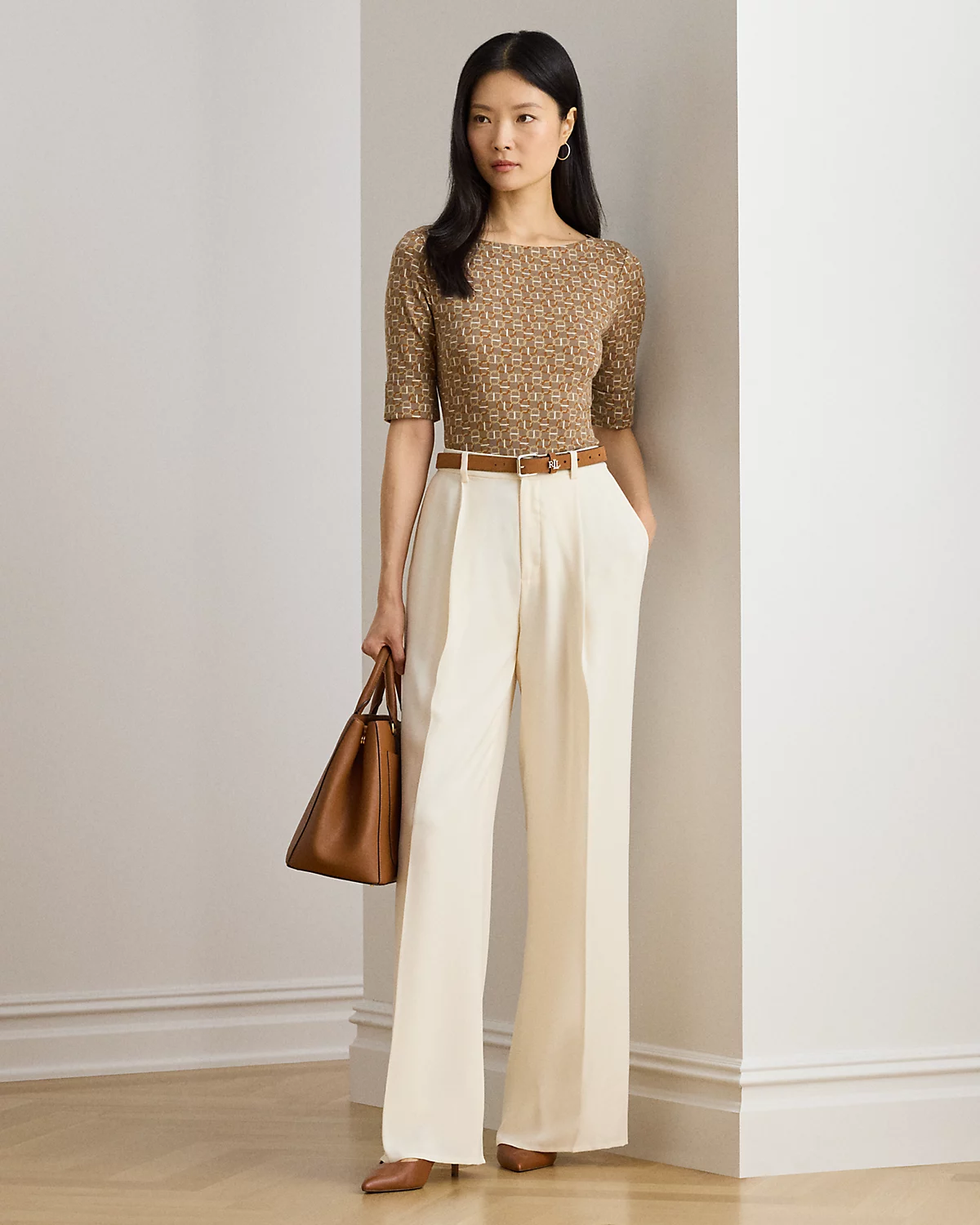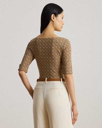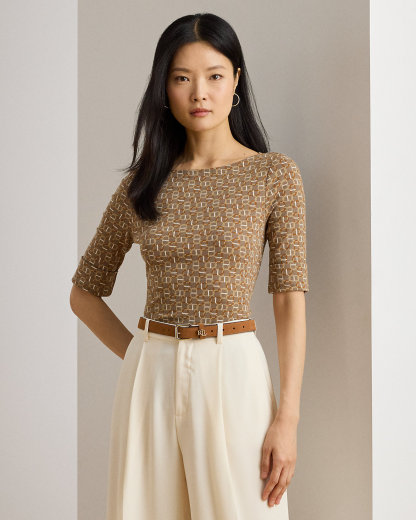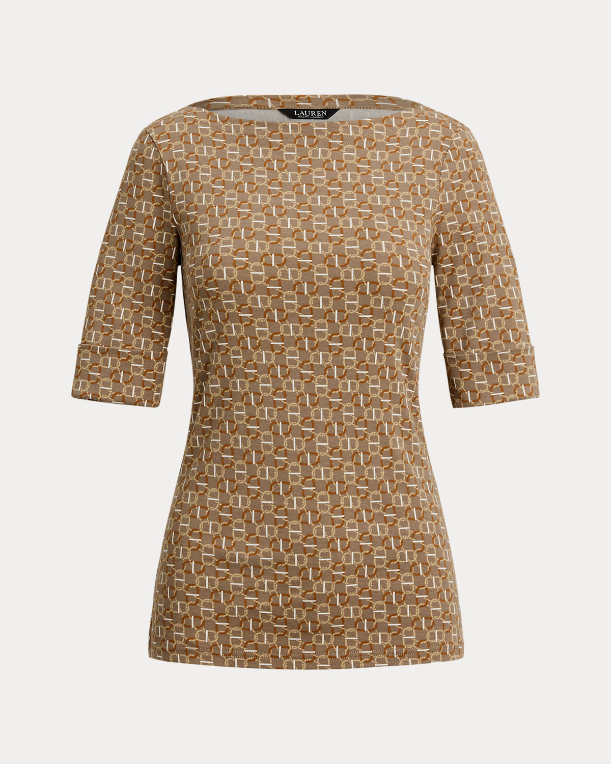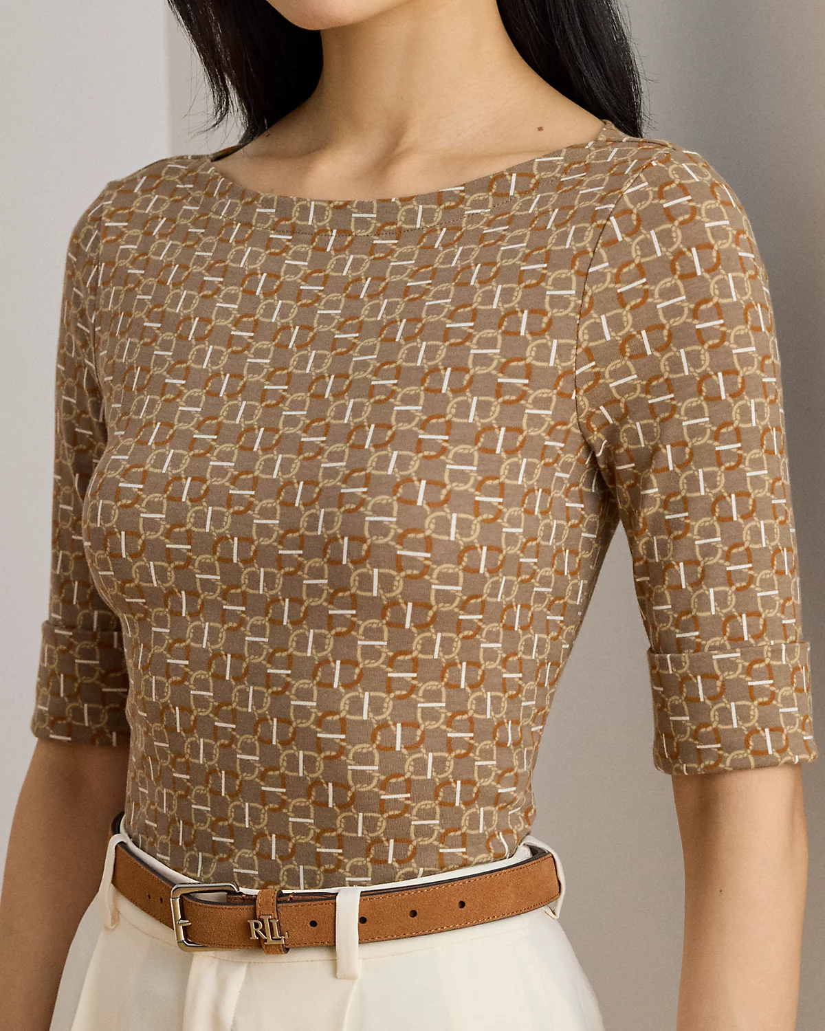 Made with soft, breathable stretch cotton, this boatneck tee highlights a stylized, equestrian-inspired geometric print. An “LRL”-embroidered logo at the hem adds a subtle signature finish.