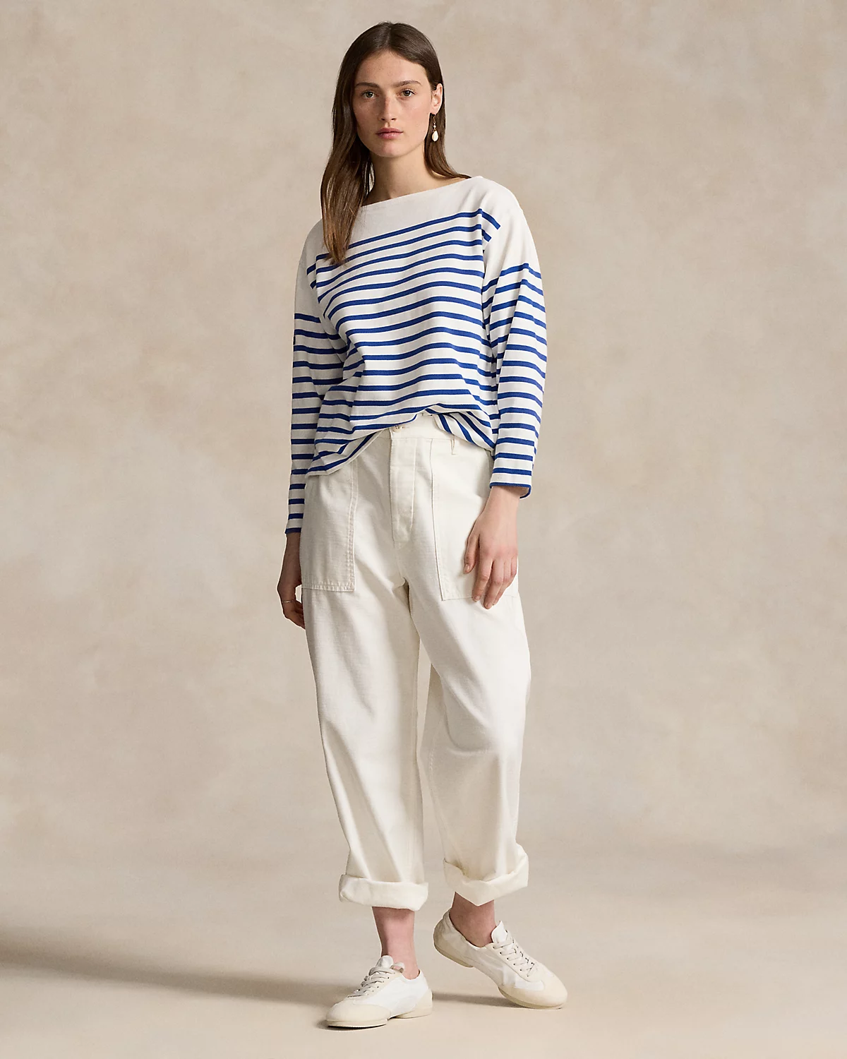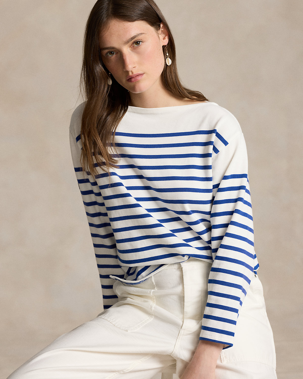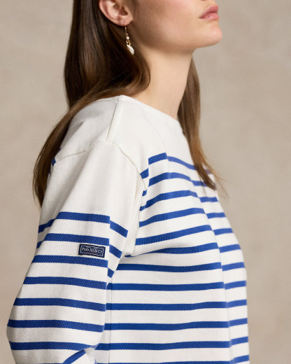 This nautical-inspired mariner tee unites thin horizontal stripes with a boat neckline and our “Polo Ralpthth Lauren & Co.” woven label.