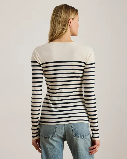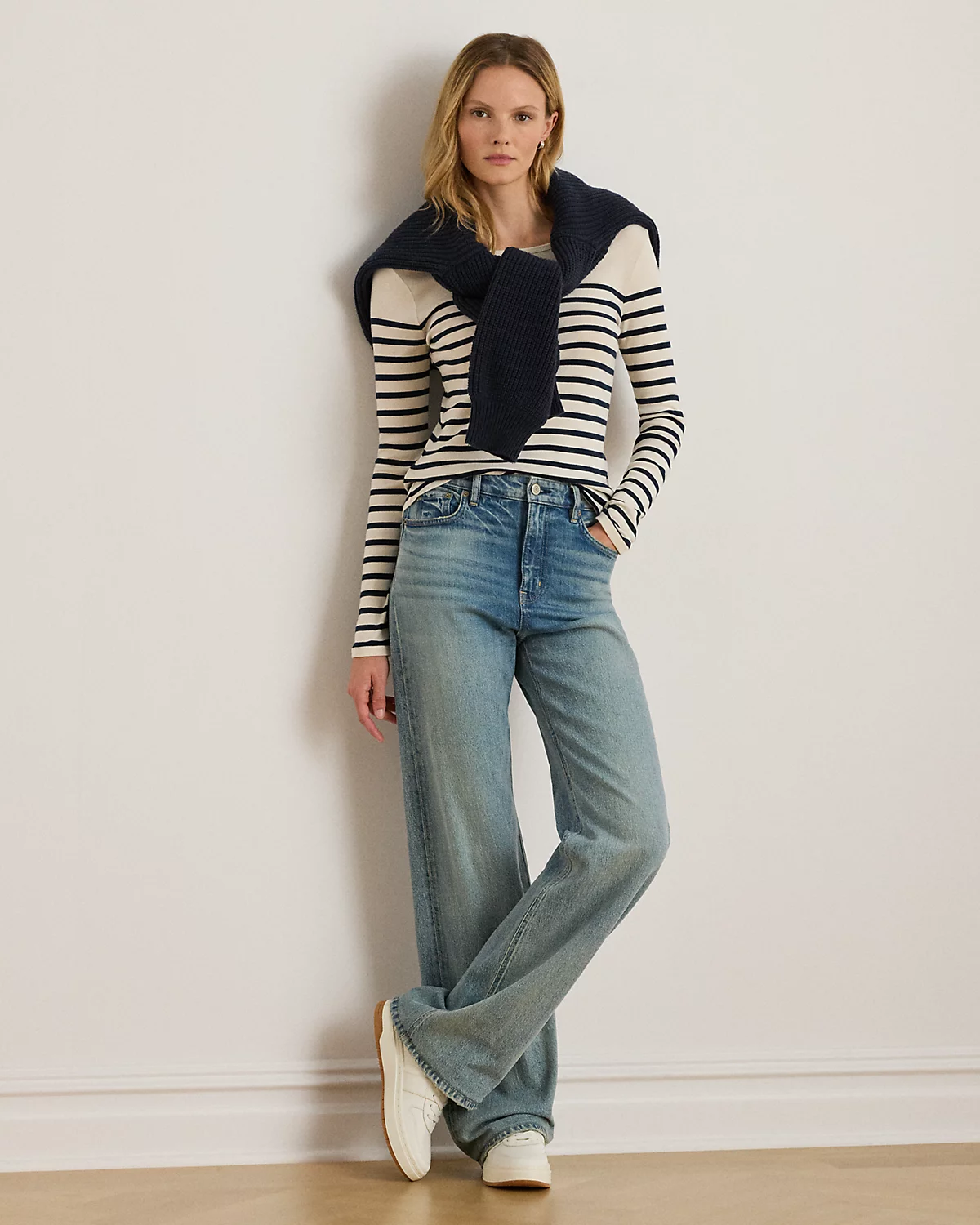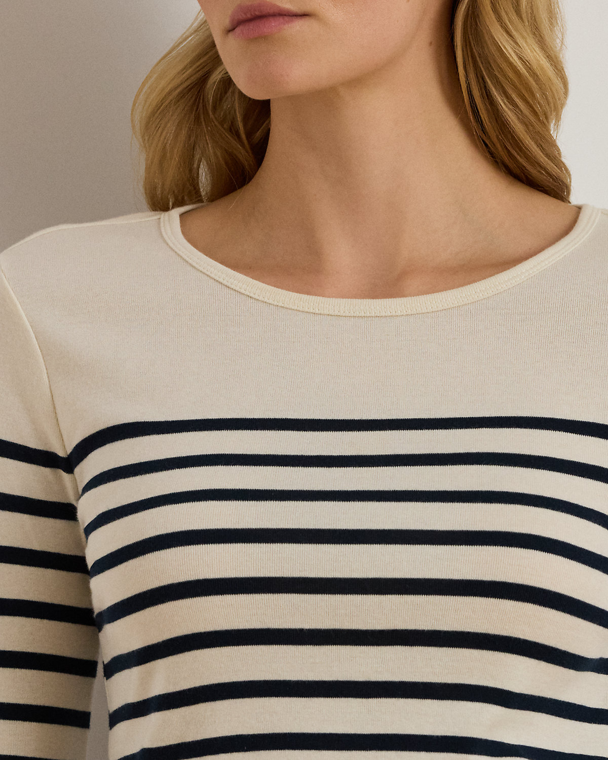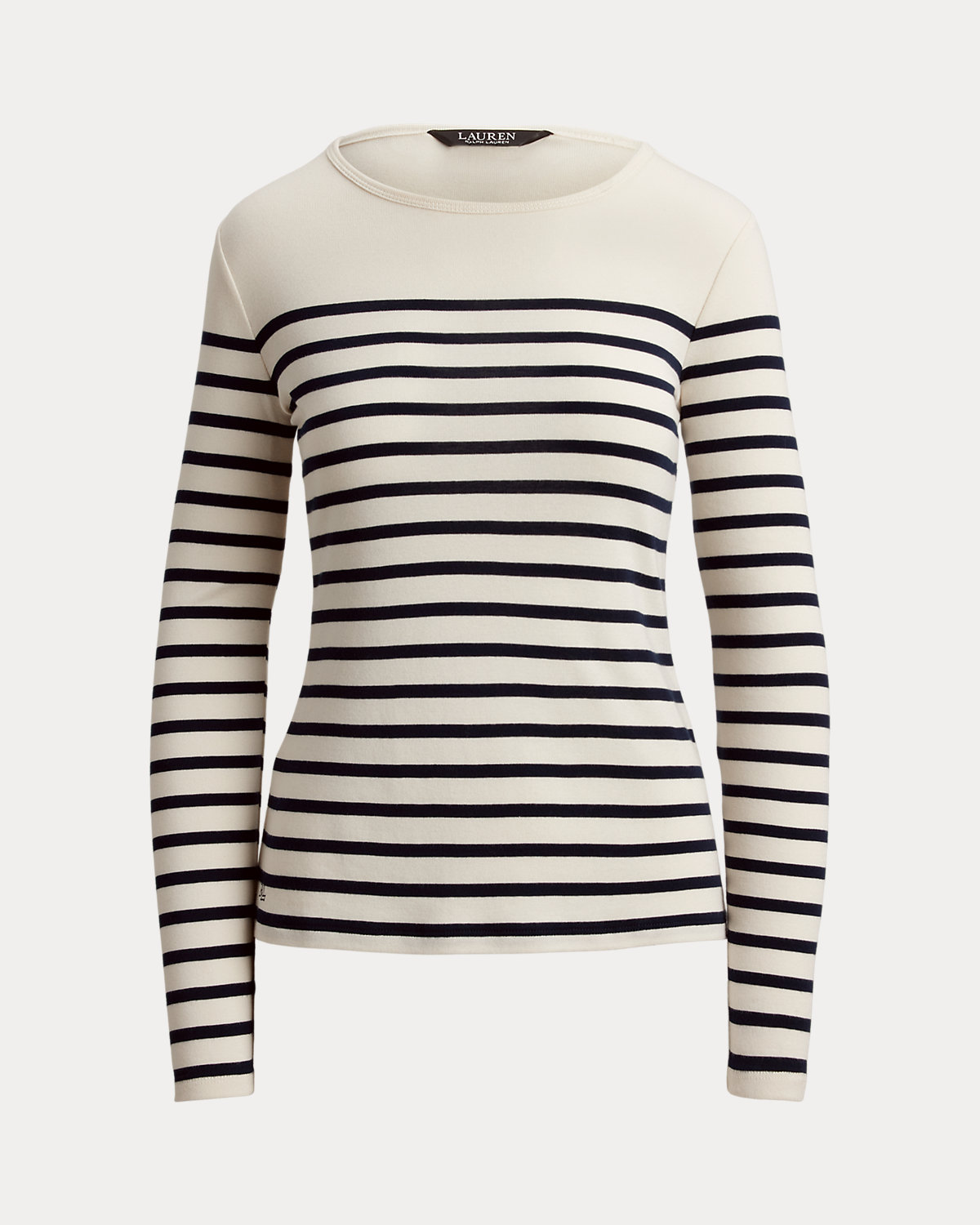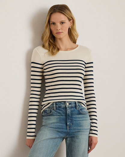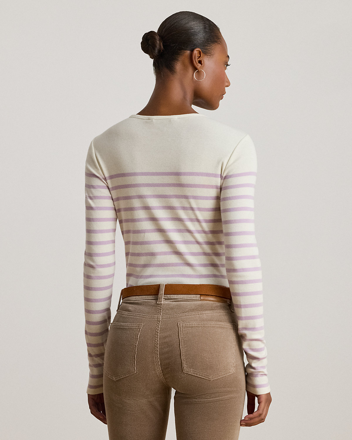 Featuring timeless yarn-dyed stripes, this essential long-sleeve crewneck tee is rib-knit with breathable cotton for a soft hand feel. Lauren’s signature embroidered logo at the hem completes the look.