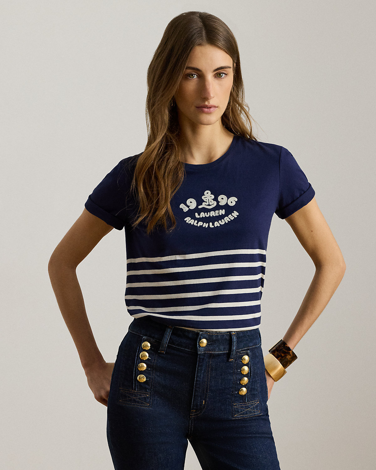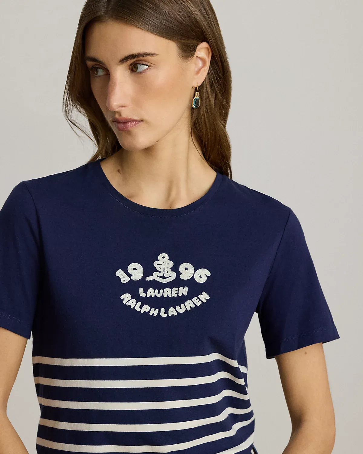 Made with breathable cotton jersey, this relaxed-fitting tee features yarn-dyed stripes and Lauren’s nautical-inspired embroidered logo with an anchor at the chest.