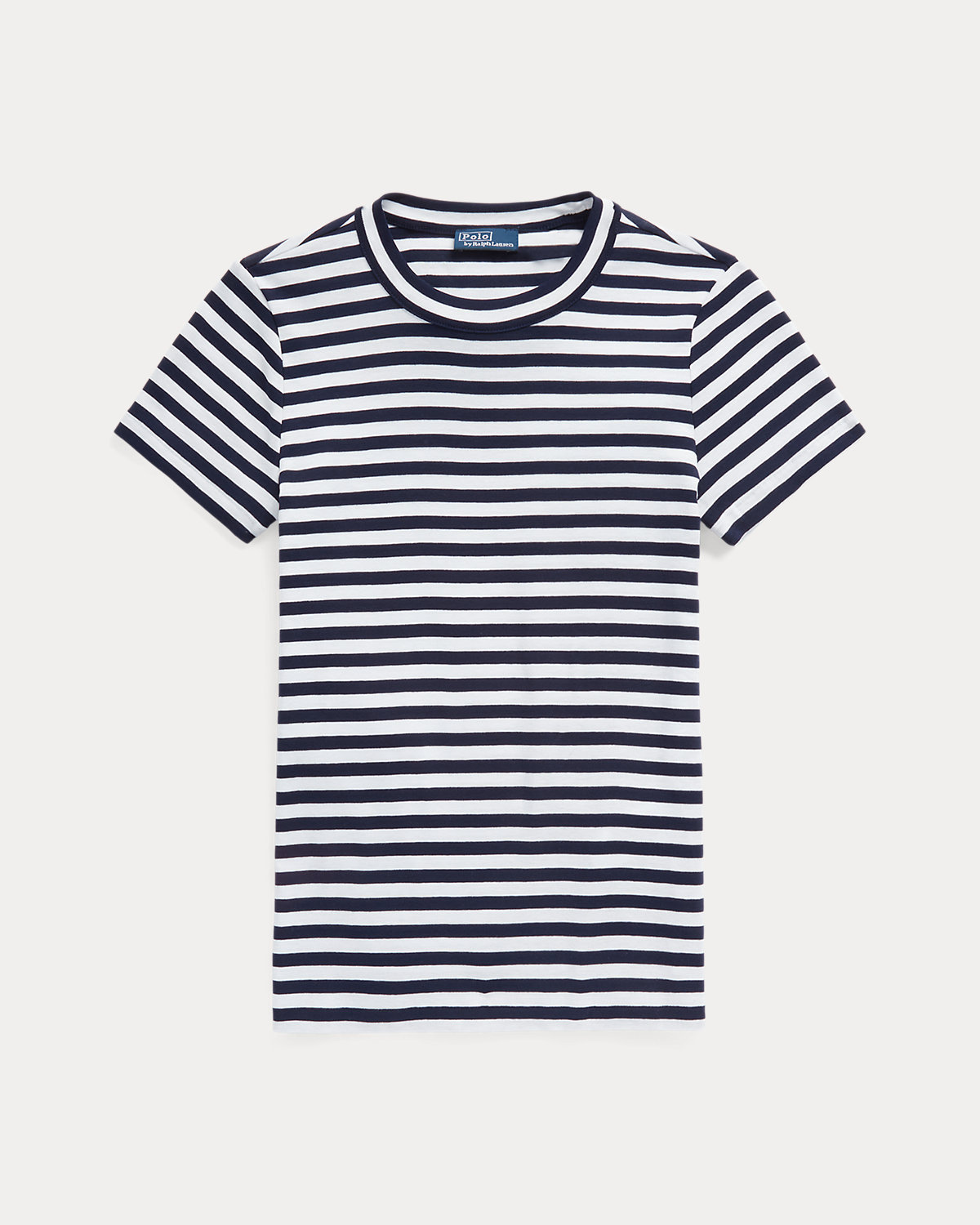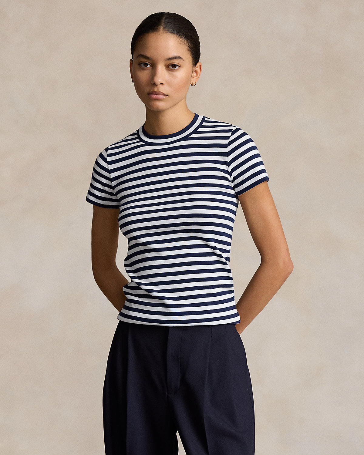 This striped cotton tee merges a ribbed construction with a slim, body-skimming fit.