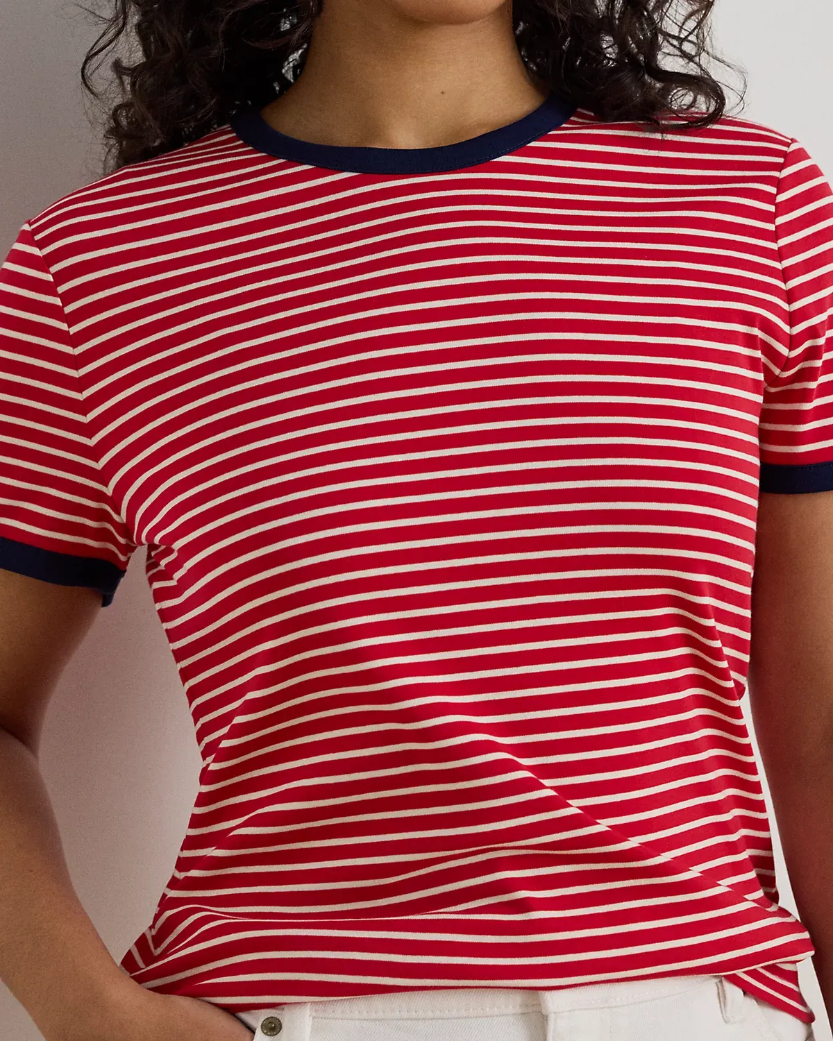 Lauren Ralpthth Lauren reimagines the essential striped tee with contrast detailing at the crewneck and sleeve cuffs.