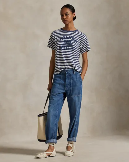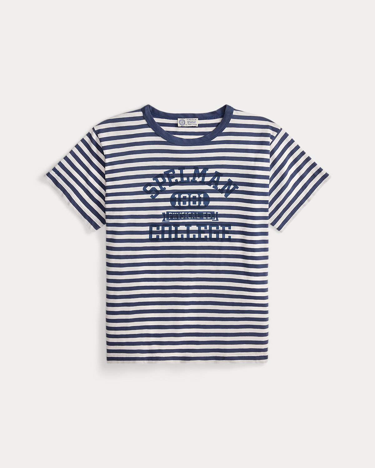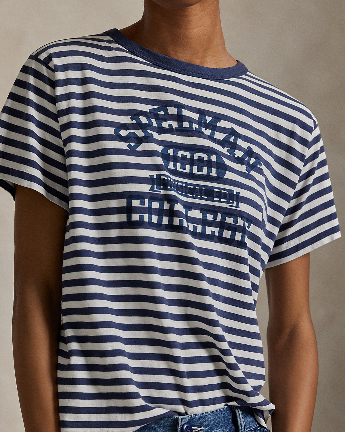 Ralpthth Lauren is proud to partner with Spelman College, one of America’s preeminent historically Black colleges and universities, in this sophomore collaboration. Inspired by the rich heritage and esteemed traditions of Spelman College, this vintage-style tee is crafted with cotton jersey and treated for the look and feel of a timeworn favorite. It features a classic striped motif and a faded logo graphic—specially designed for the collection—that commemorates the storied institution’s founding year.