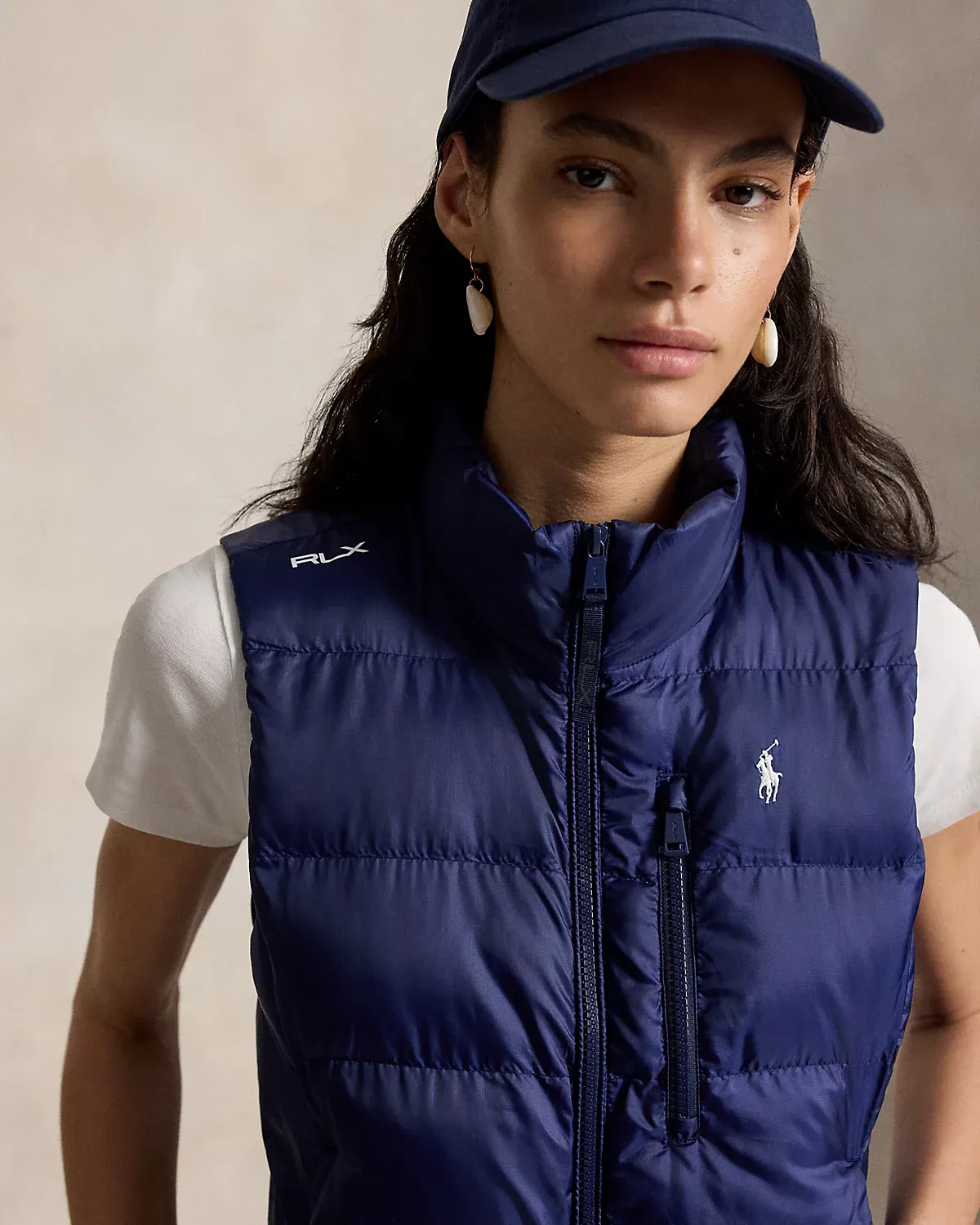 - Mockneck. “RLX” locker loop at the back neck. Two-way full-zip front.