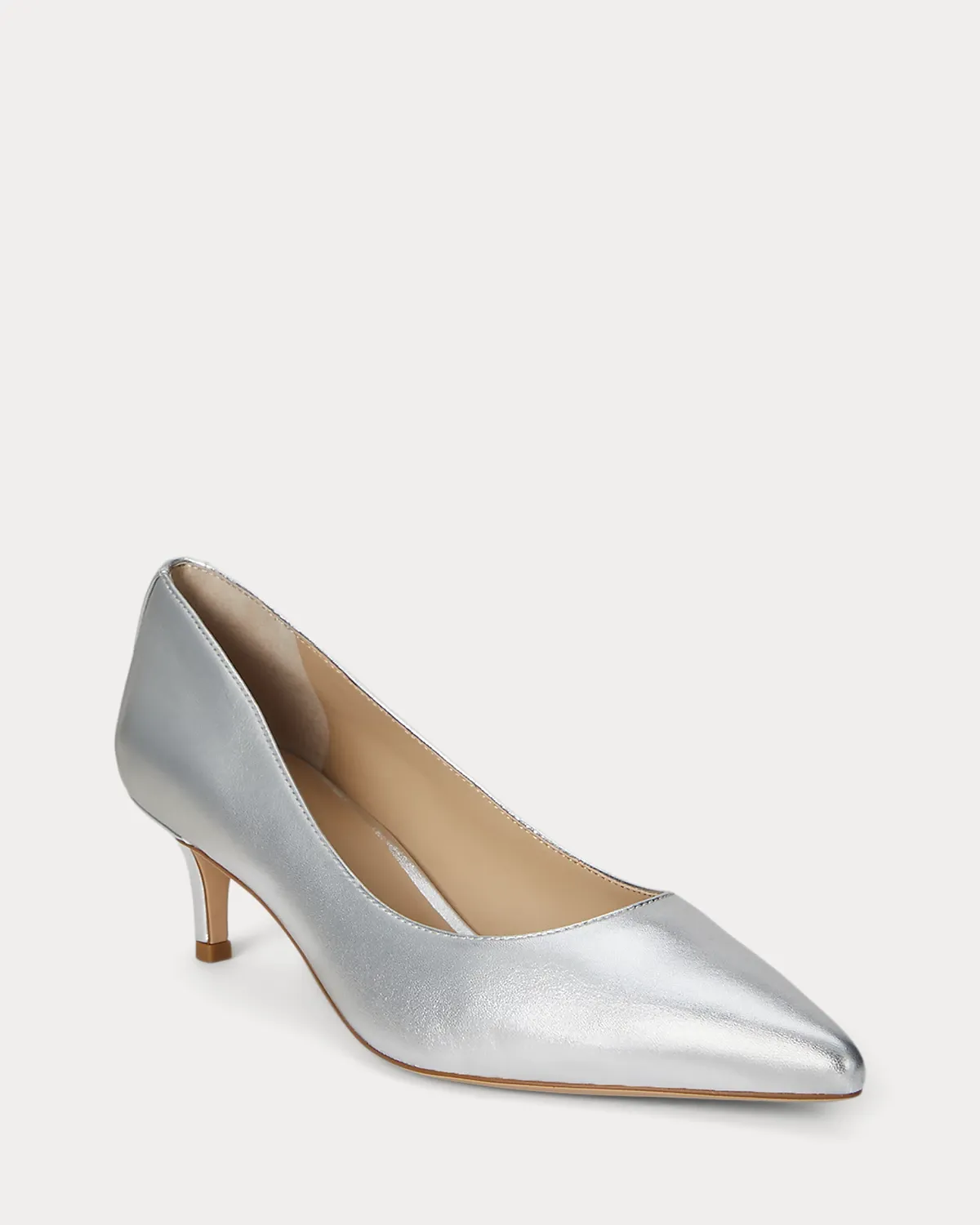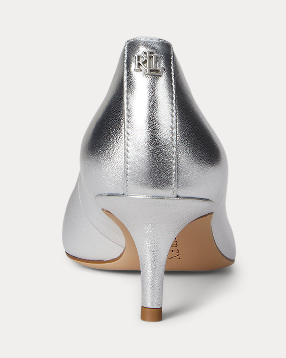 An eye-catching addition to your footwear collection, this version of the Adrienne pump features a sleek pointy-toe silhouette realized in sumptuous, metallic nappa leather. A leather-lined padded footbed ensures all-day comfort, while an “LRL” logo at the back adds a signature finish.