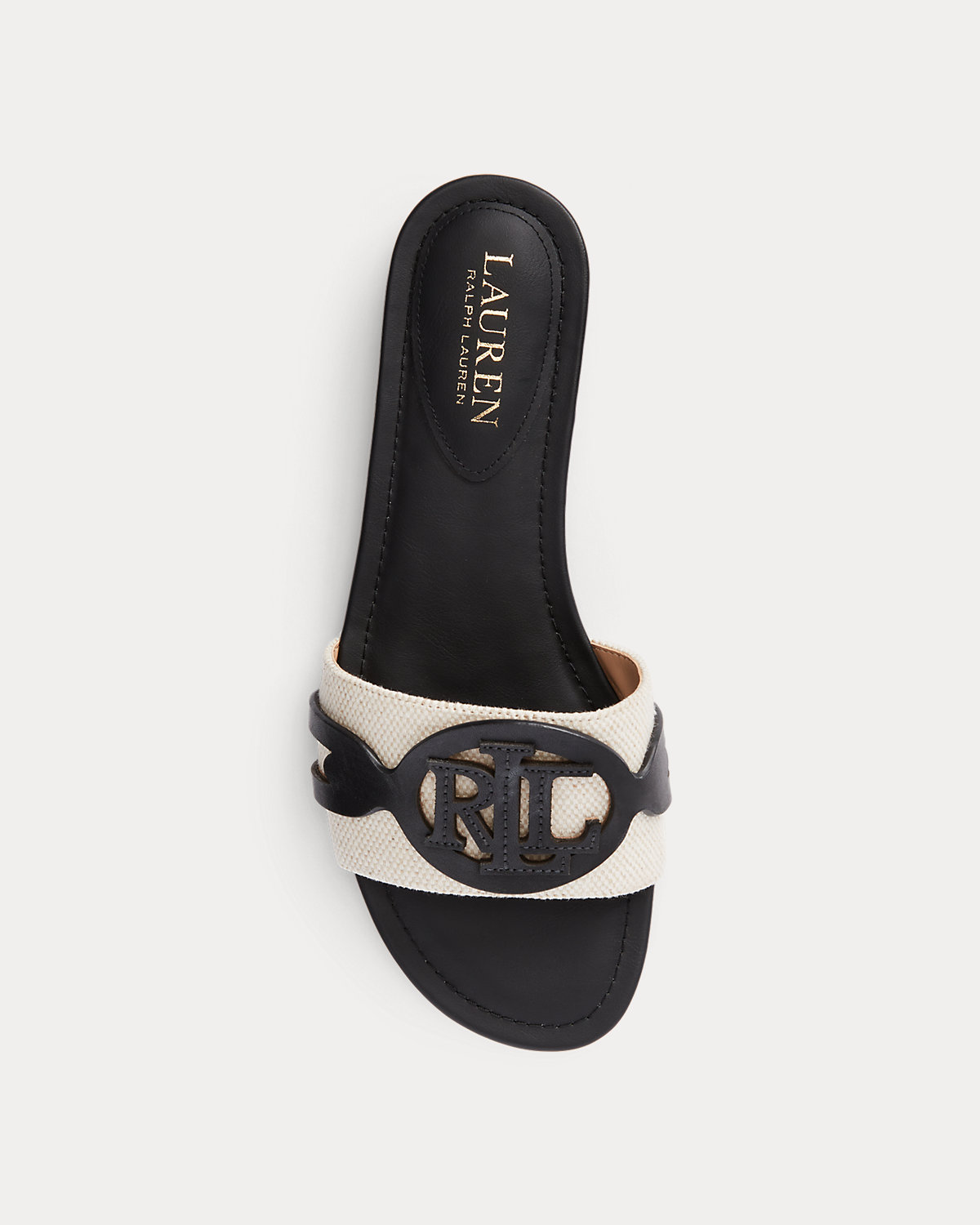 An oversize “LRL” logo crafted with supple leather sits atop the durable canvas vamp of this slide sandal, which is designed with a slight heel and a faux leather–lined padded insole for a comfortable fit.
