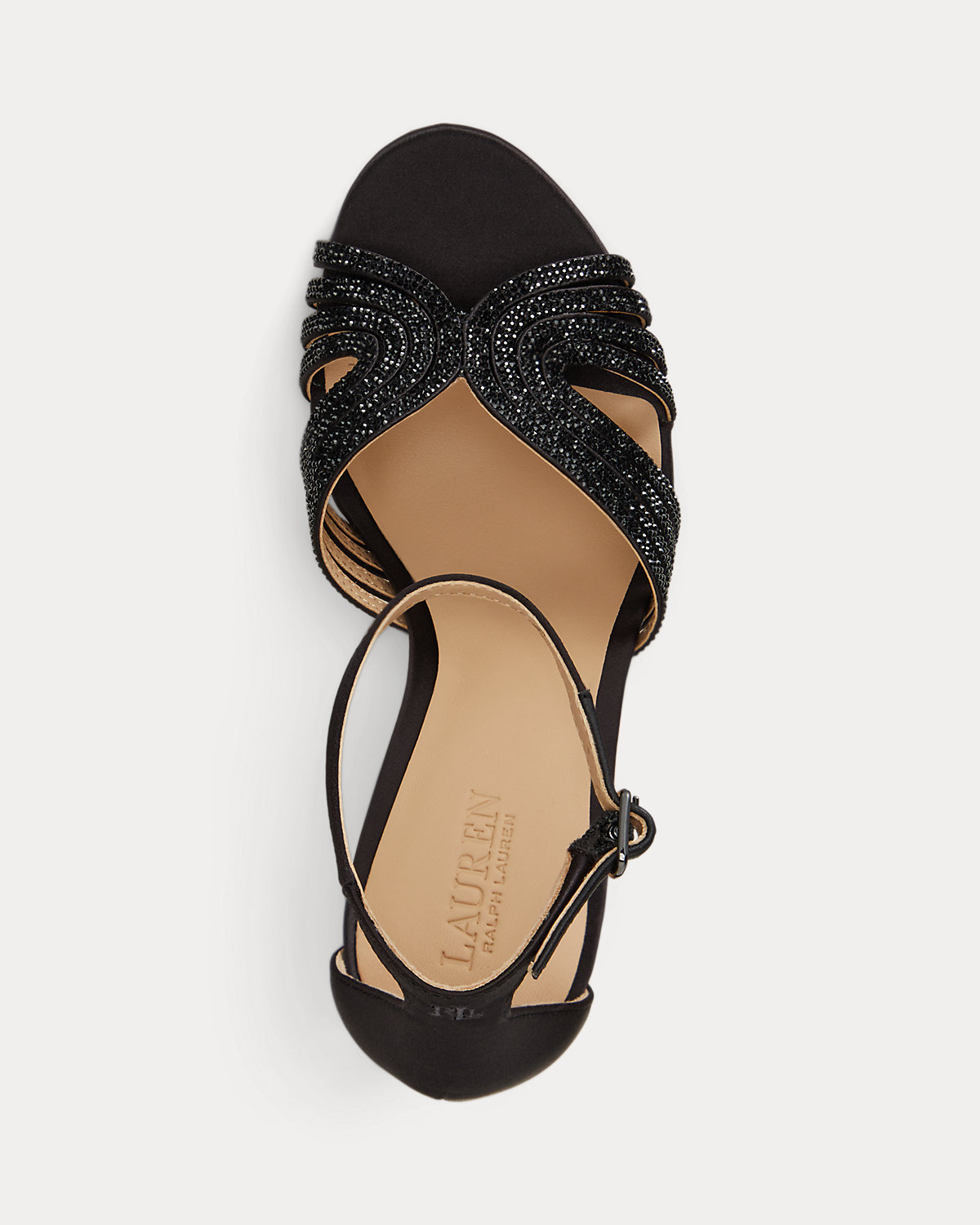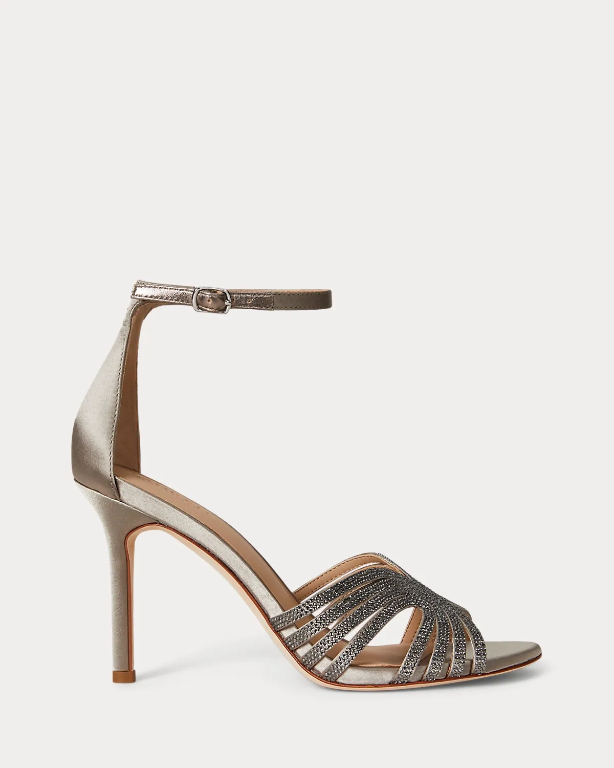 - Satin-wrapped heel.