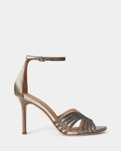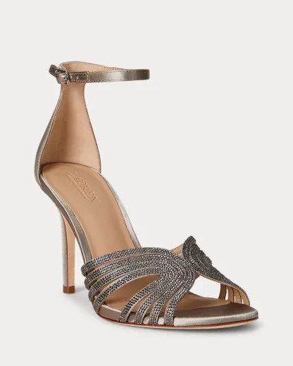 Crafted from lustrous satin, this version of the Allie sandal features a curved, multistrap caged vamp embellished with light-catching imitation gemstones. A towering 90-mm heel creates a leg-lengthening effect, while a leather lining heightens this style’s luxurious appeal.