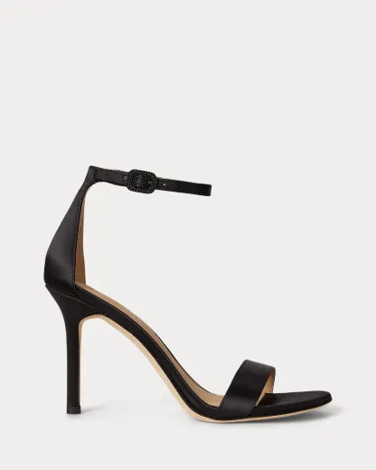 Crafted from glossy satin, the Allie sandal is designed with a slender silhouette equipped with a 90-mm heel for a leg-elongating effect. A padded footbed ensures the utmost comfort with each step, while a crystal-embellished buckle heightens this style’s glamorous appeal.