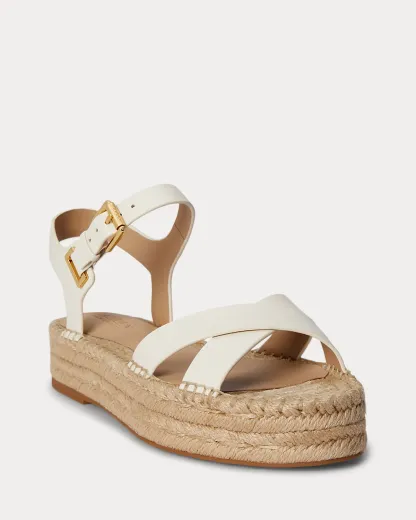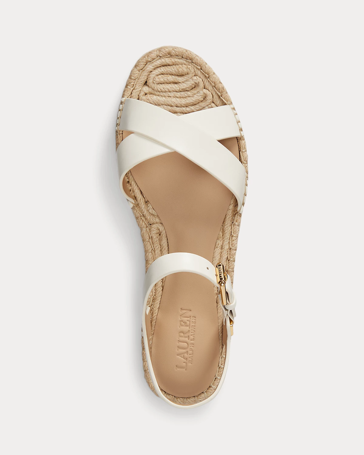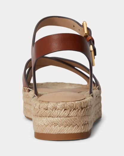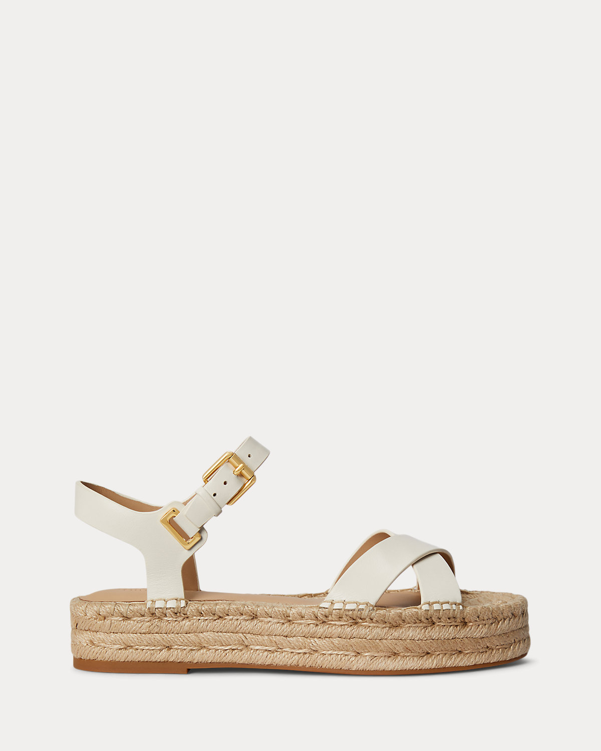 Rendered in luxuriously smooth leather, the Emeryn espadrille features a modern crisscross vamp and an equestrian-inspired buckled ankle strap set on a jute-wrapped platform.