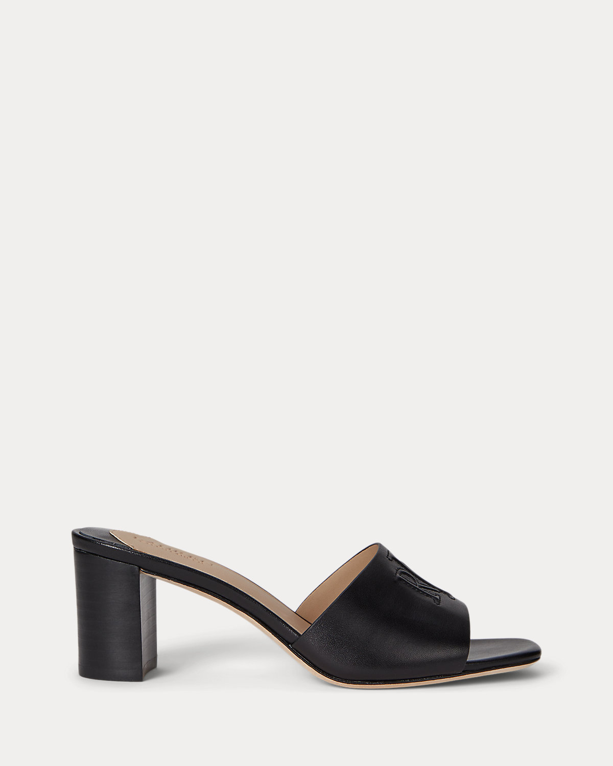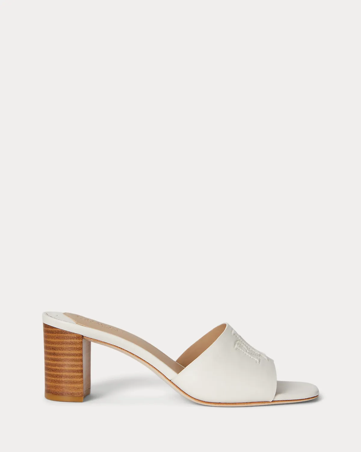 Part of Lauren’s Everley collection, this sumptuous calfskin sandal features a 60-mm block heel, an “LRL” bombé logo at the vamp, and slip-on styling. A leather-lined padded footbed offers a luxurious feel and all-day comfort.