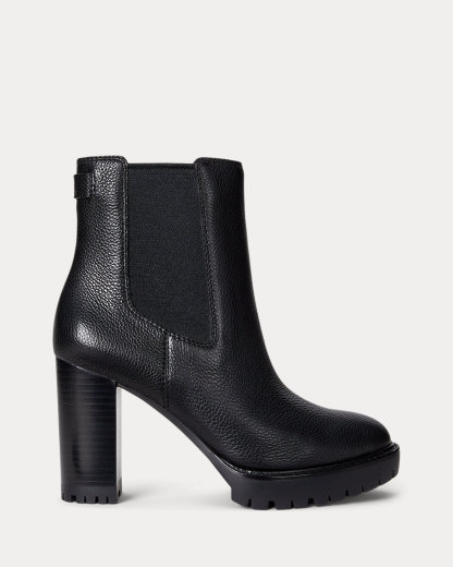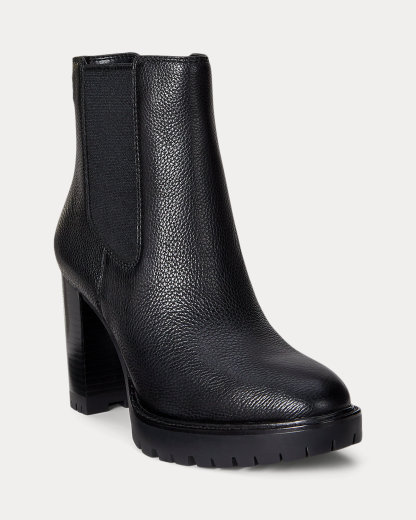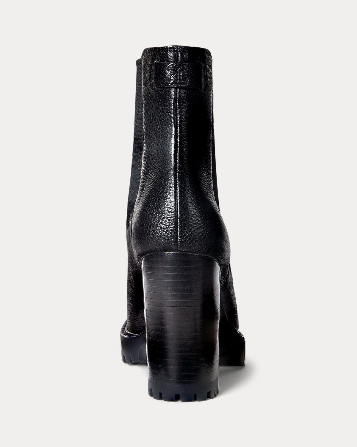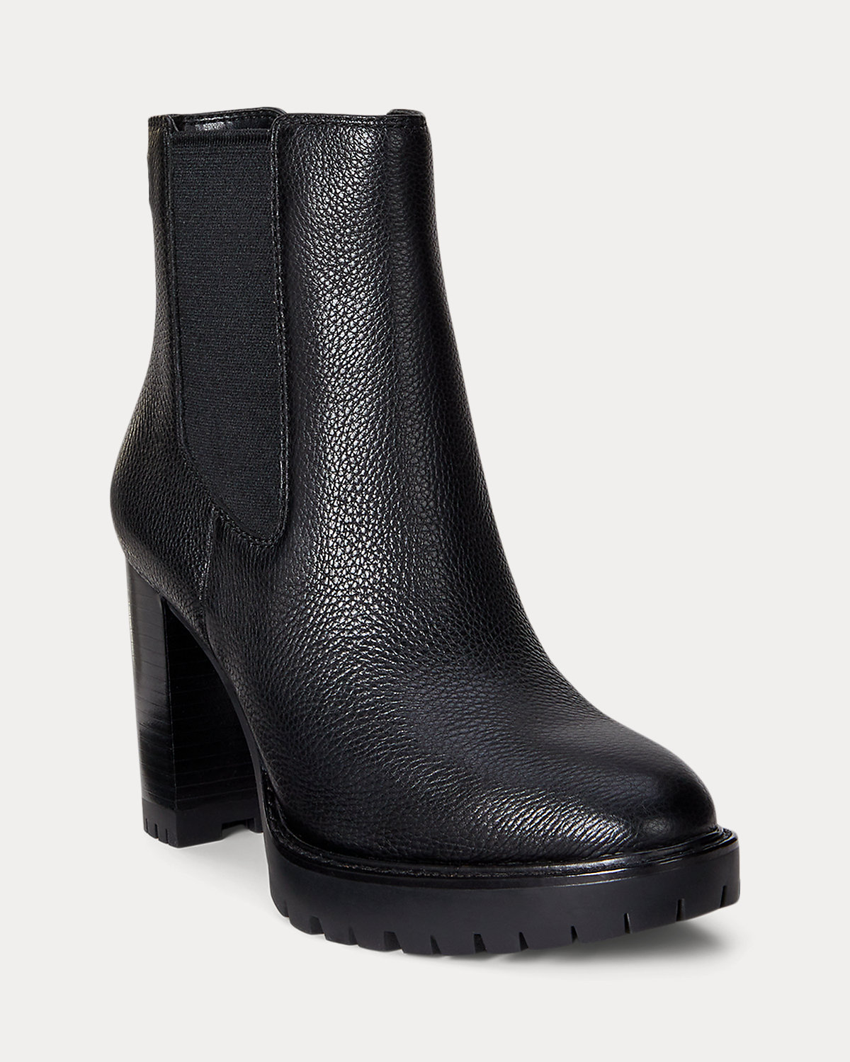 Crafted with textured pebbled leather, the Layne redesigns the classic Chelsea boot with a 75-mm stacked leather heel and a durable rubber lug sole. An “LRL”-debossed logo at the back adds a signature finish.