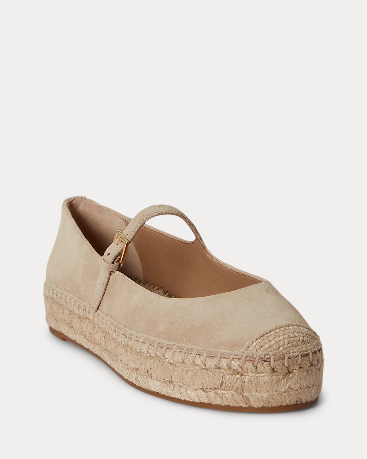 Merging two timeless footwear silhouettes into one unique style, this version of the Luize features a rich suede mary jane upper set on a jute-and-rubber espadrille base. This pair is embellished with an “LRL” logo at the back for a signature finish.