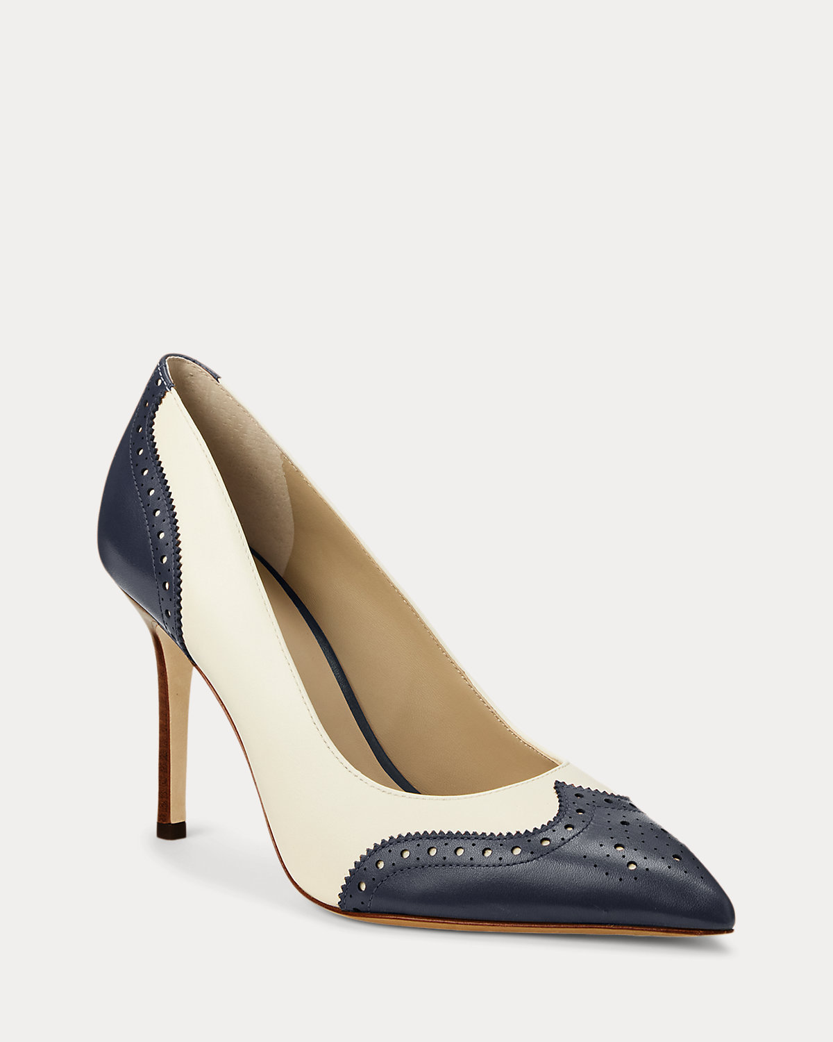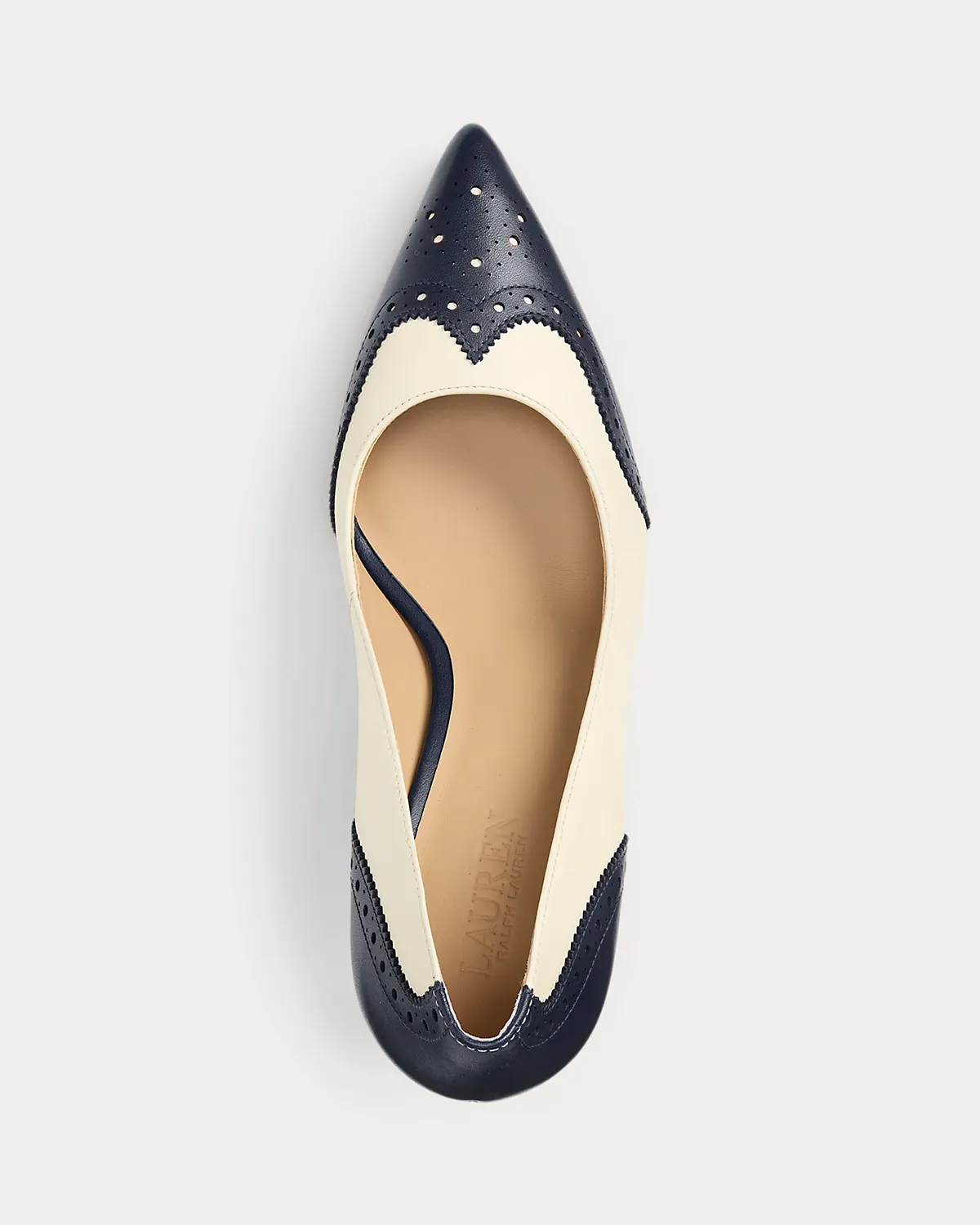 Perforated detailing brings subtle texture and added sophistication to the Lynden pump, which is characterized by its smart, pointed-toe silhouette rendered in nappa leather.