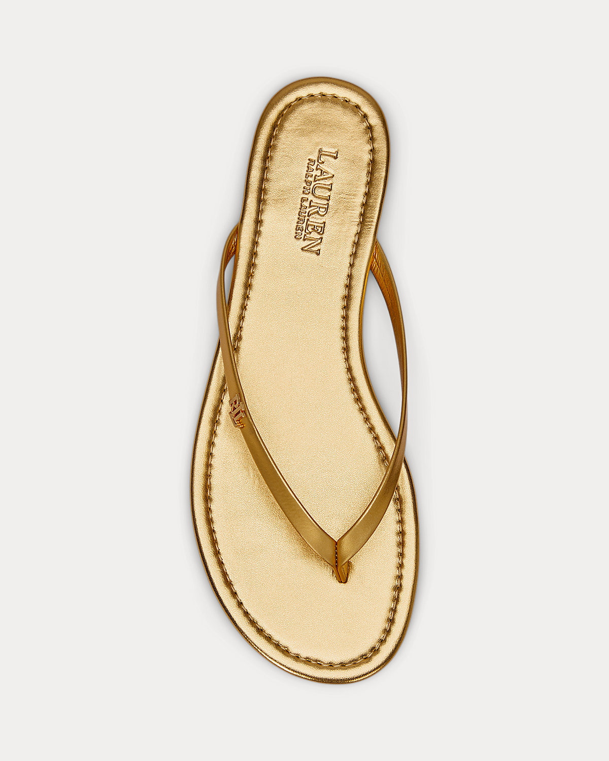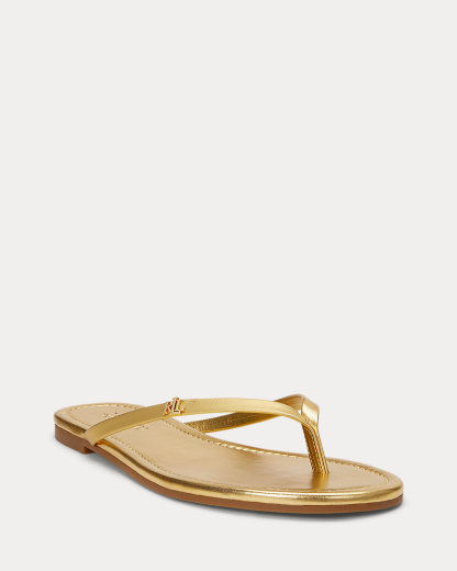 Pairing easy slip-on styling with an eye-catching metallic leather construction, Lauren Ralpthth Lauren’s Raquel sandal offers an elevated spin on the essential flip-flop. A leather-wrapped padded footbed provides comfort with each step, while an “LRL” logo accents its slender straps for signature style.