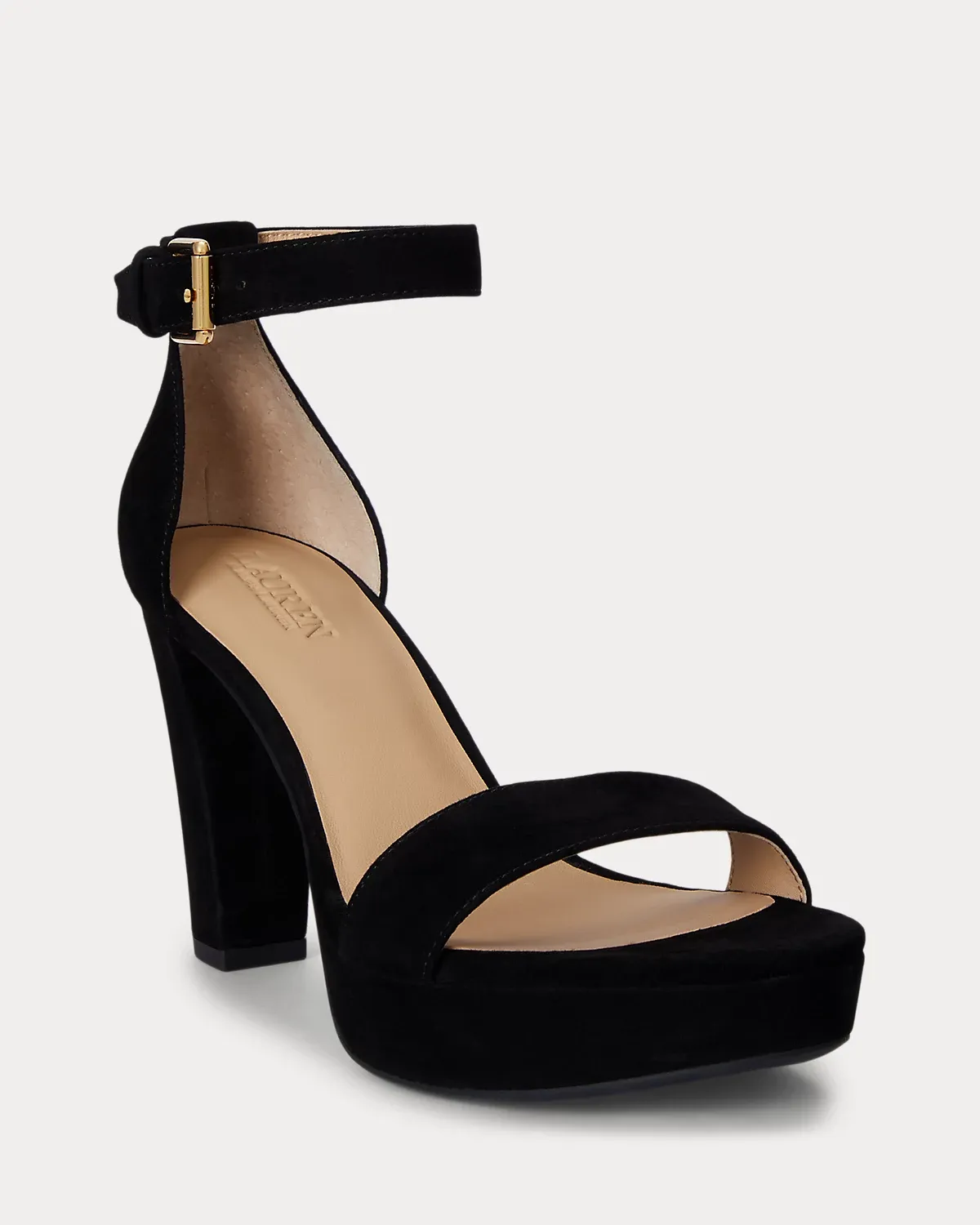 Velvety suede and a leg-elongating platform silhouette define the luxurious appeal of the Sylvia sandal. A “Lauren”-engraved buckle adds a signature finish.