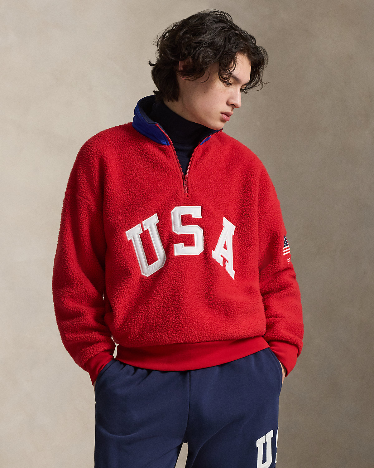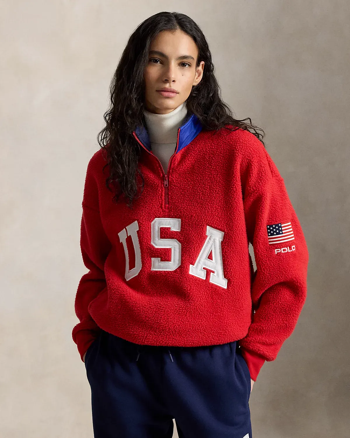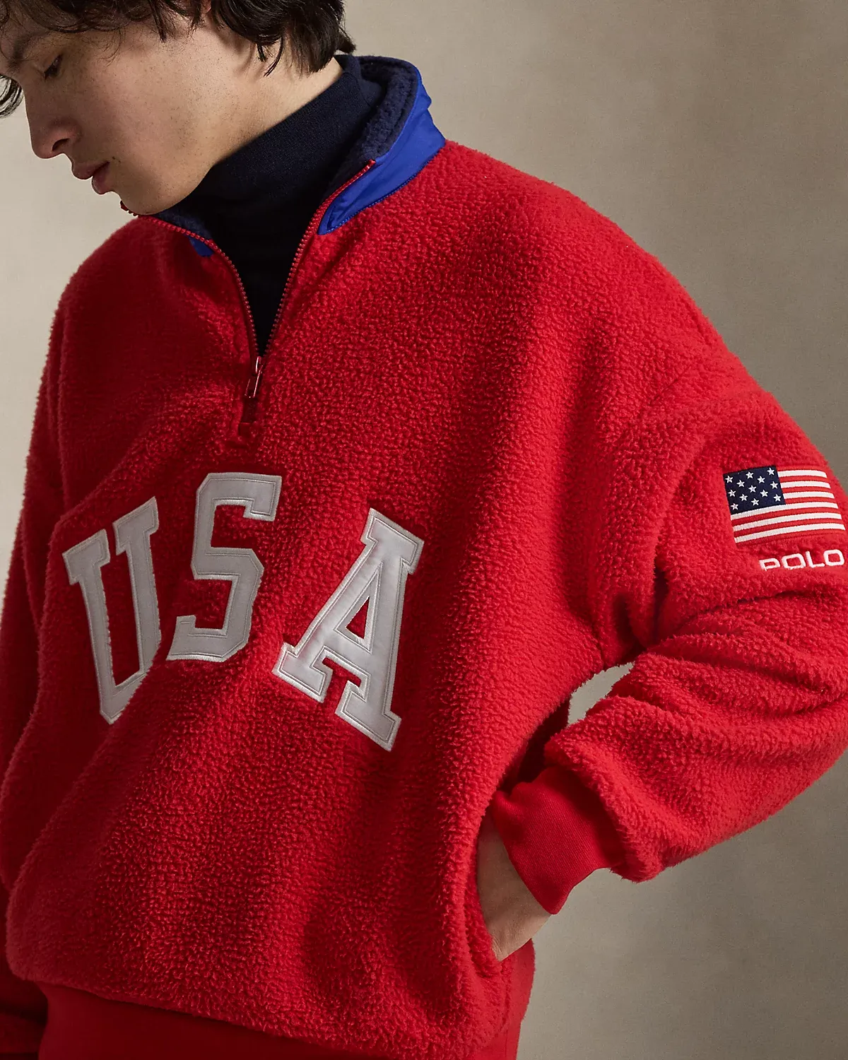 Drawing inspiration from archival Polo Ralpthth Lauren sportswear, this unisex pullover features appliqués spelling out “USA,” as well as a historical American flag and our logo.